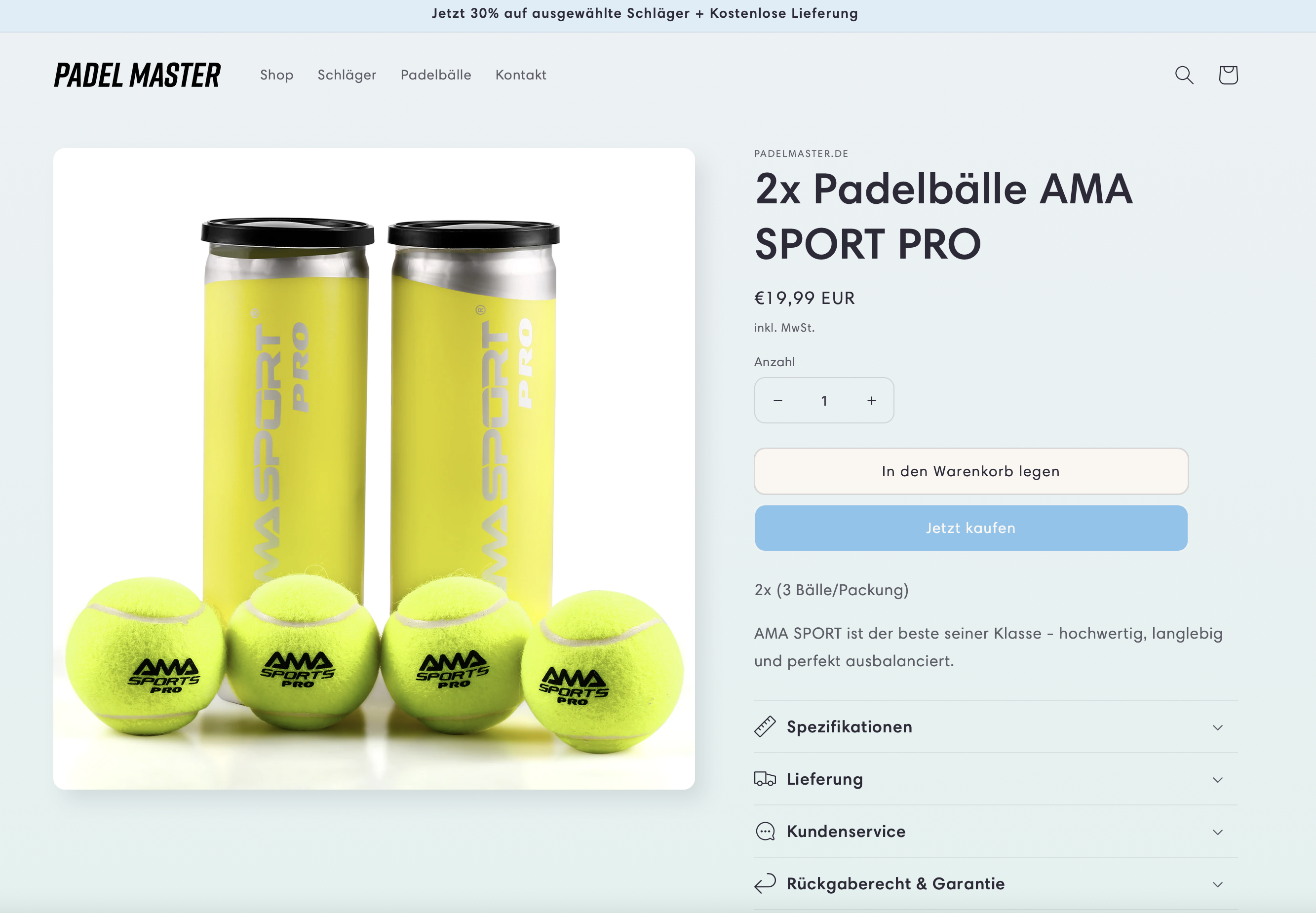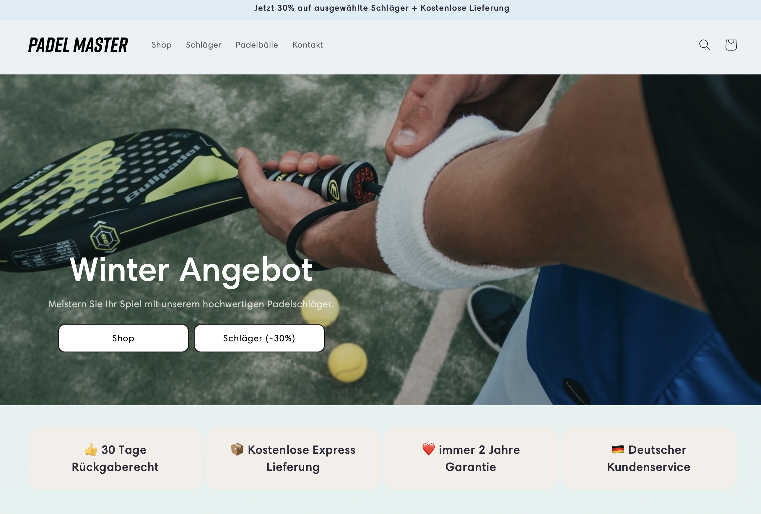 Padelsport er et voksende marked i Tyskland, og Padelmaster.de har stort potentiale til at blive en markant aktør på markedet. Vi forhandler kvalitetsprodukter til rimelige priser men stadig med gode marginer.