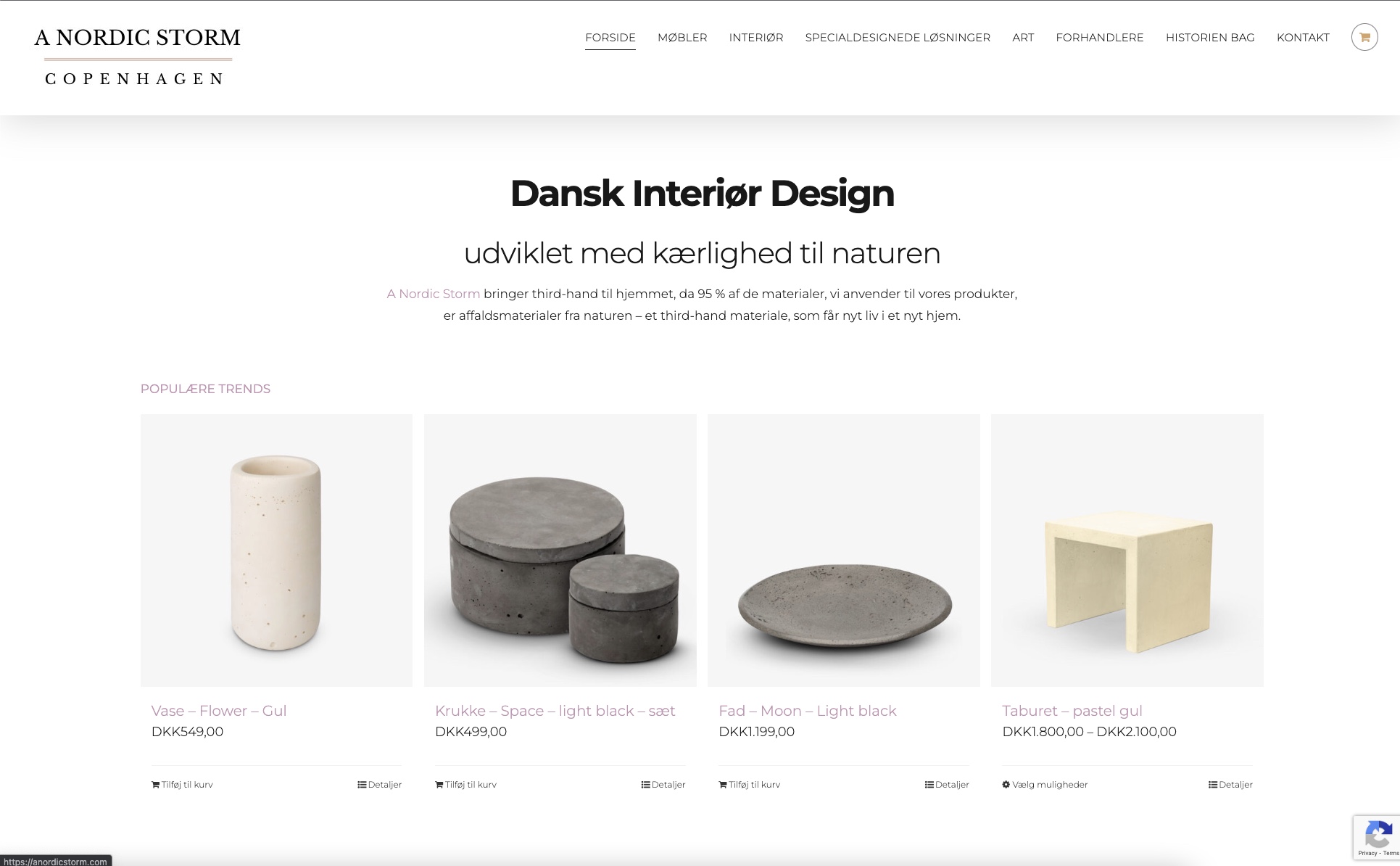 Webshop A Nordic Storm - Håndlavet produkter med forhandler liste - Omsætning 70.000 kr.