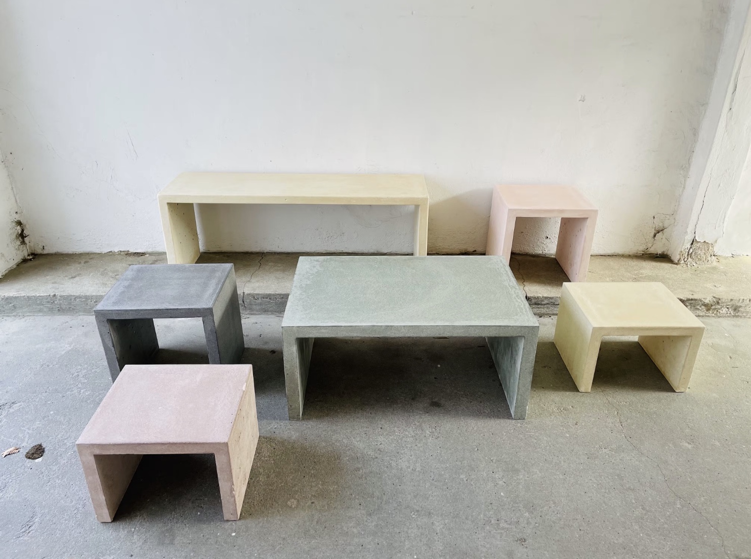 Håndlavet møbler og mindre produkter, lavet i bæredygtige materialer - knust marmor.