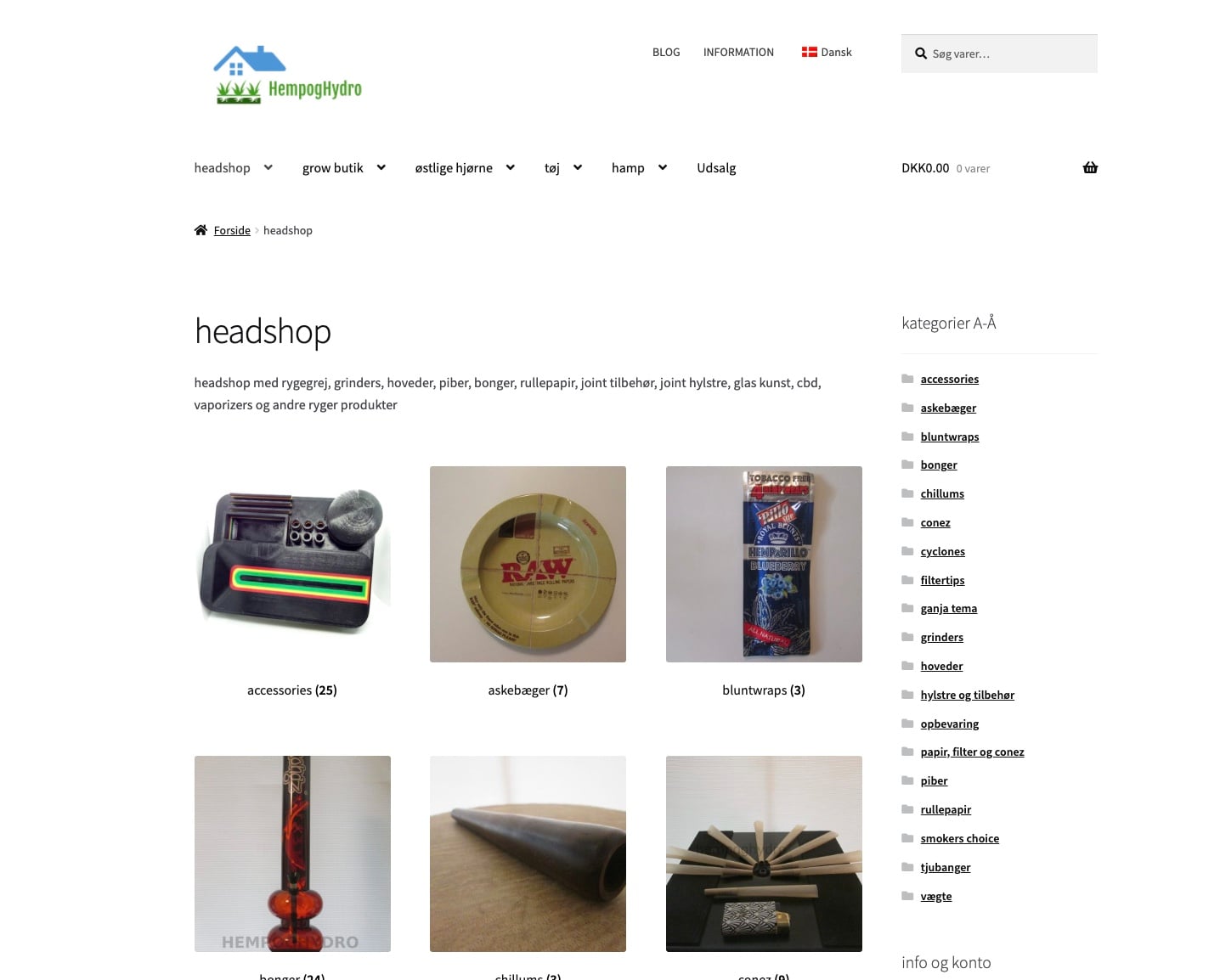 Headshop med tøj og andet - cbd, piber, rullepapir mm. - Webshop