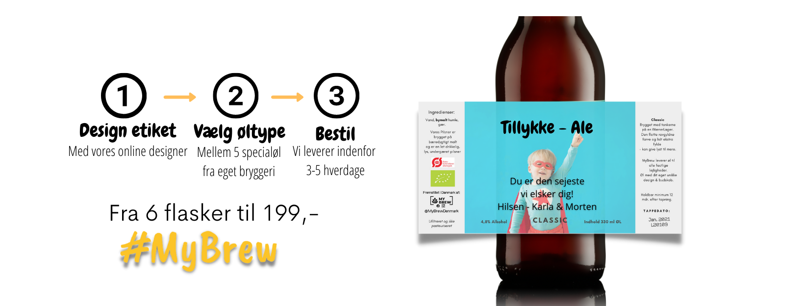 På mybrew.dk kan kunder designe deres helt unikke etiket til en af vore mange dejlige ølvarianter.