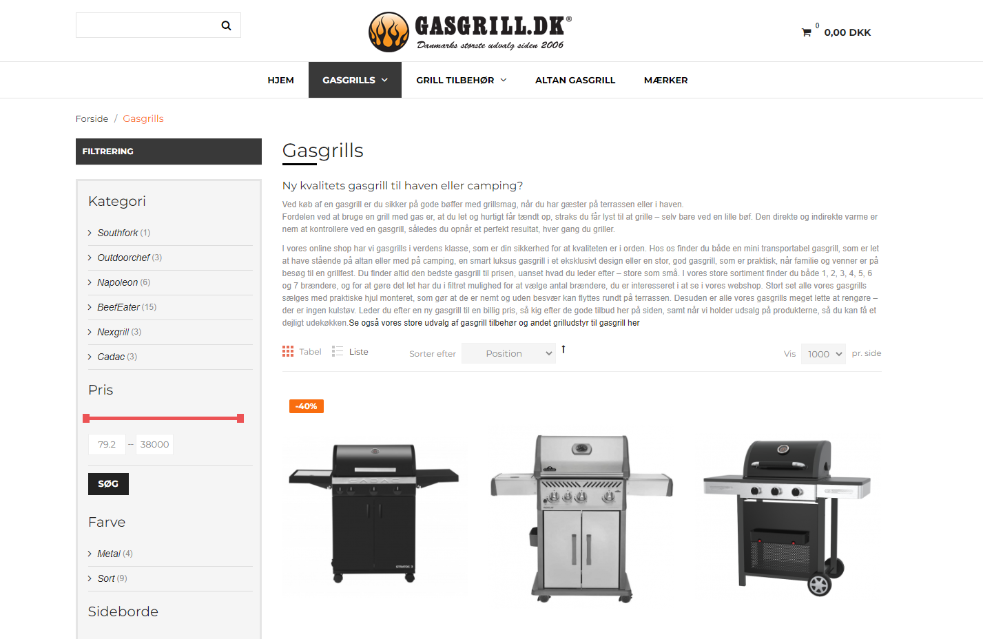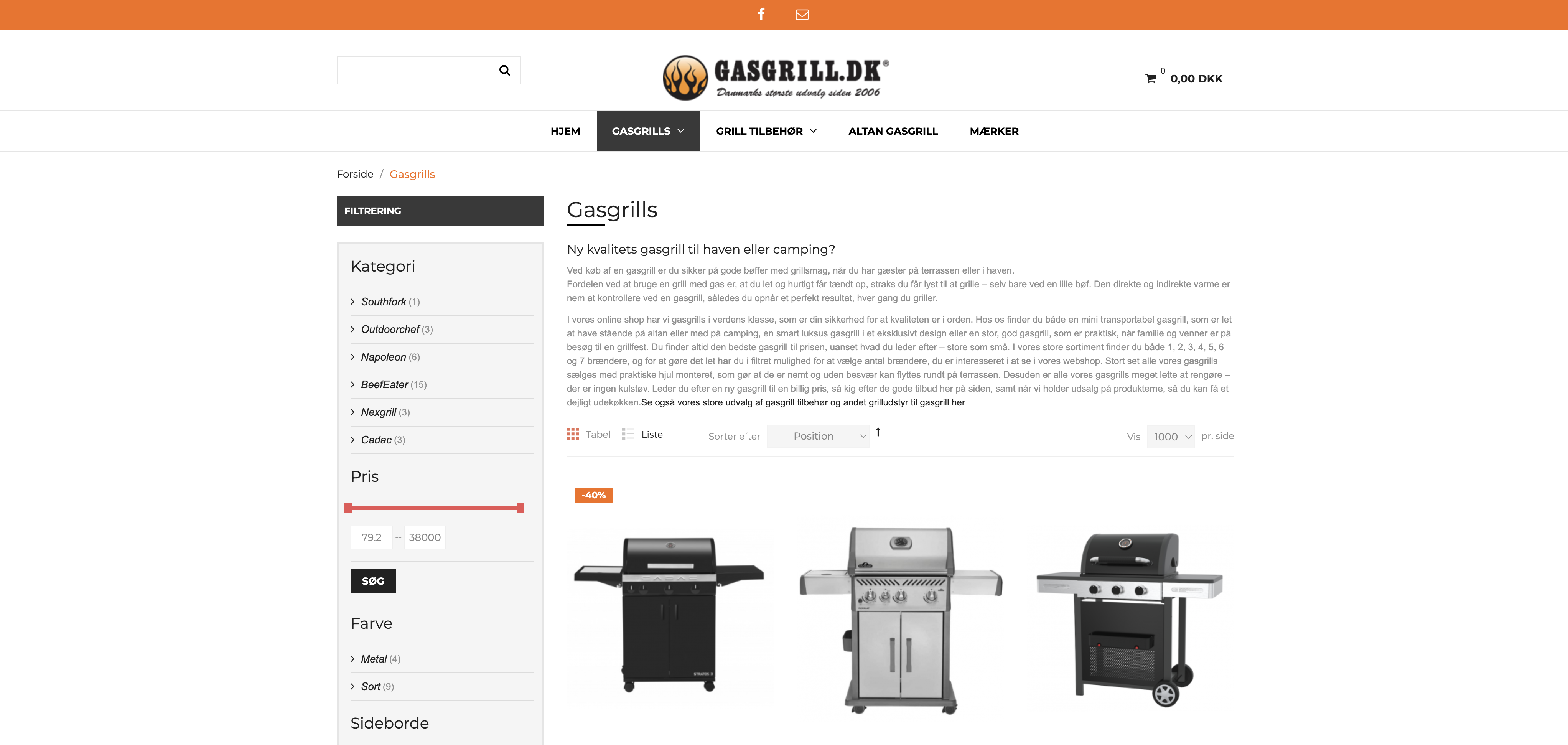 Veletableret webshop fra 2006 med salg af gasgrill og grilltilbehør