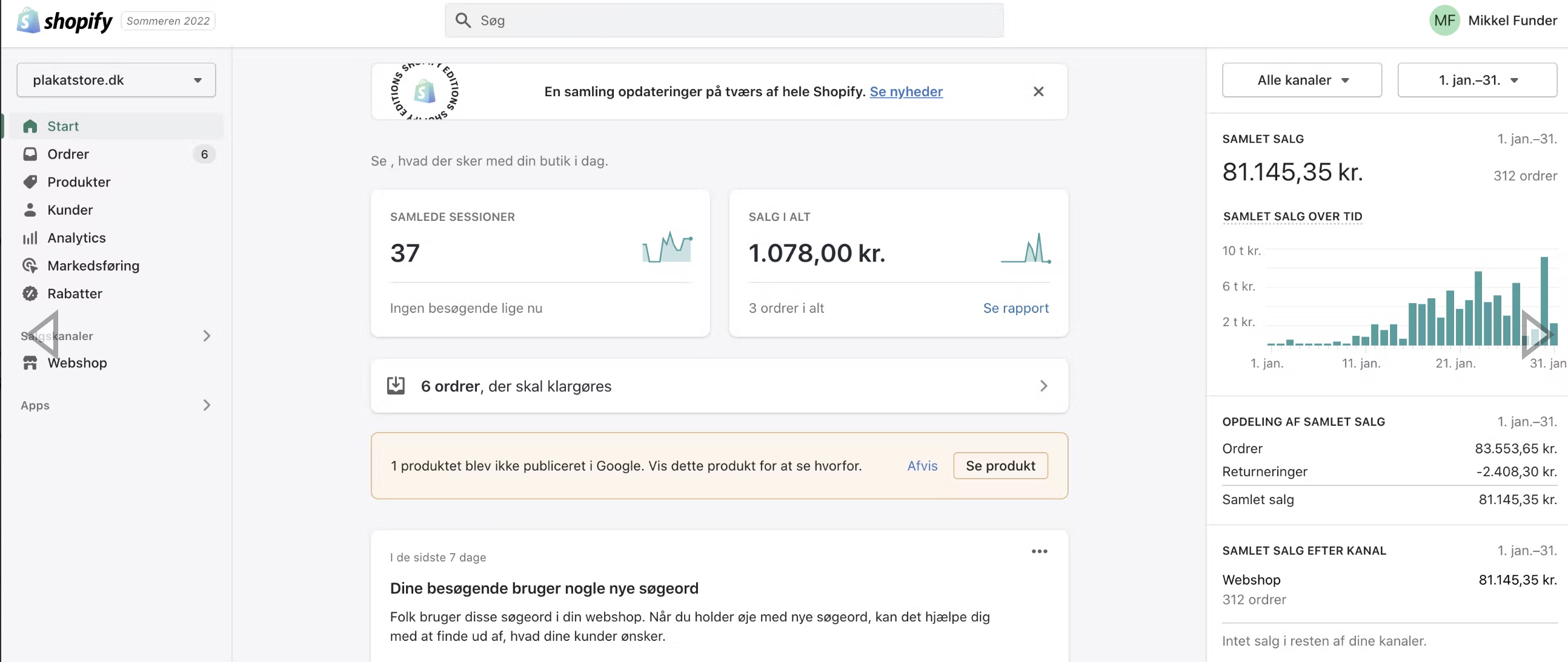 Der er brugt mange timer på designet af webshoppen. Der blev omsat for 82.000 i januar 2022, hvor jeg tildelte webshoppen en del af min tid.