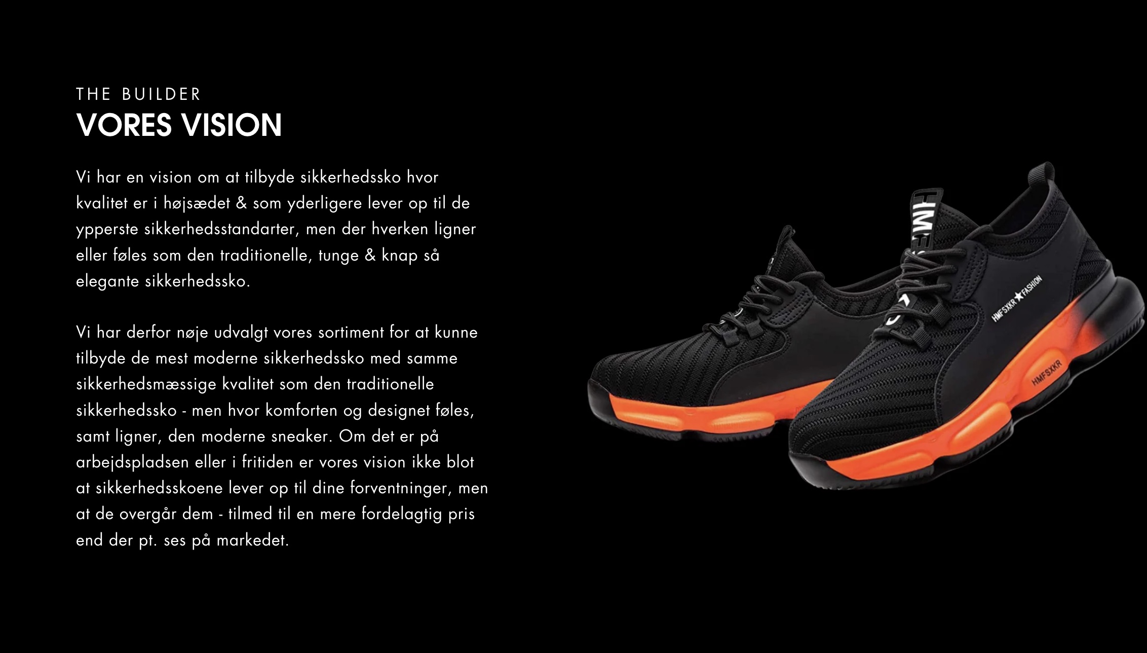 Stilrene og sikre sikkerhedssko til mænd og kvinder af højeste kvalitet. Varelageret er unlimited per produkt og The Builder har pt. +50 produkter ialt. Produkterne der er på webshoppen er af de mest populære produkter i industrien og kan ændres når sæsonen skifter.