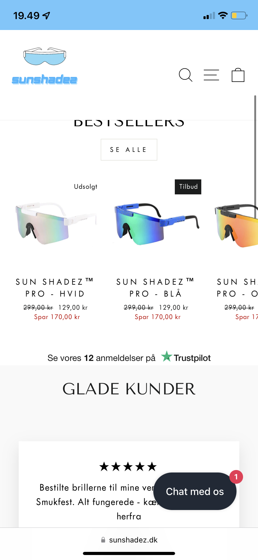 Sunshadez.dk sælger customized sol/skibriller til overkommelige priser, men med en sund dækningsgrad. På blot 1,5 måned er der blevet omsat for 44.000 på hjemmesiden og 16.000 privat via trendsales og facebook, hvor der også er mange henvendelser hver uge.
