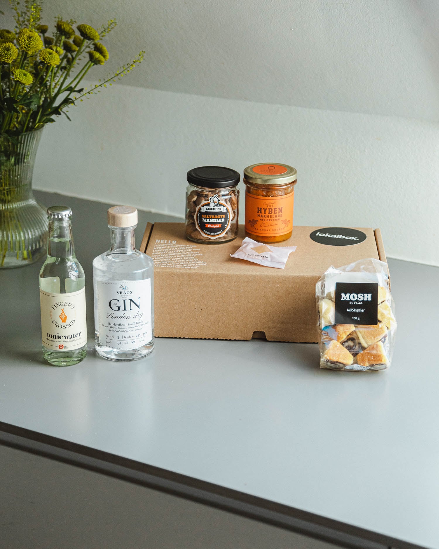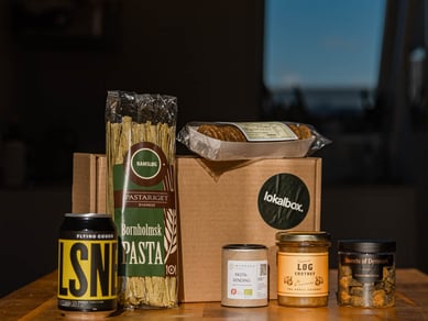 Vi har skabt Lokalbox, som er et abonnementskoncept, hvor man som medlem en gang om måneden modtager nye, spændende produkter (honning, cider, marmelade, osv.) fra lokale danske producenter.