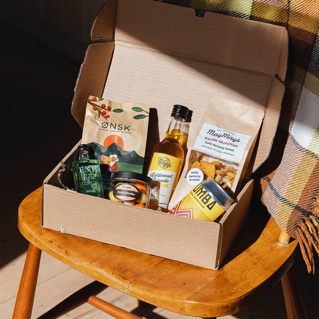 Hver måned sammensætter vi 6-8 autentiske, lokale lækkerier fra Danmarks byer og regioner, som vi leverer gratis til døren. Det er vigtigt for os, at det er varer, som kan bruges i den almindelige husstand. Vi ønsker ikke at fylde skufferne med ting der går i gemmerne. Tvært imod ønsker vi at bidrage til det almene indkøb med produkter, som støtter små producenter, og som smager af en anelse mere kærlighed.
