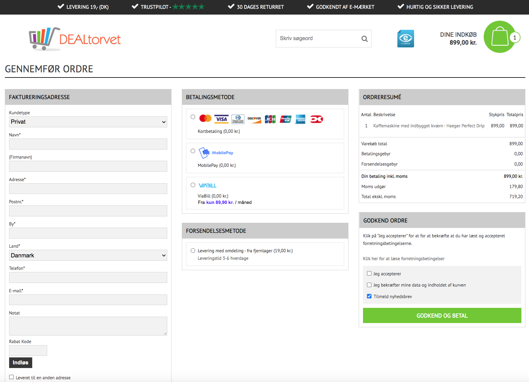 Shoppen er let at handle i. Den er overskuelig og designet efter de klikmønstre, som størstedelen af de nethandlende benytter i dag.