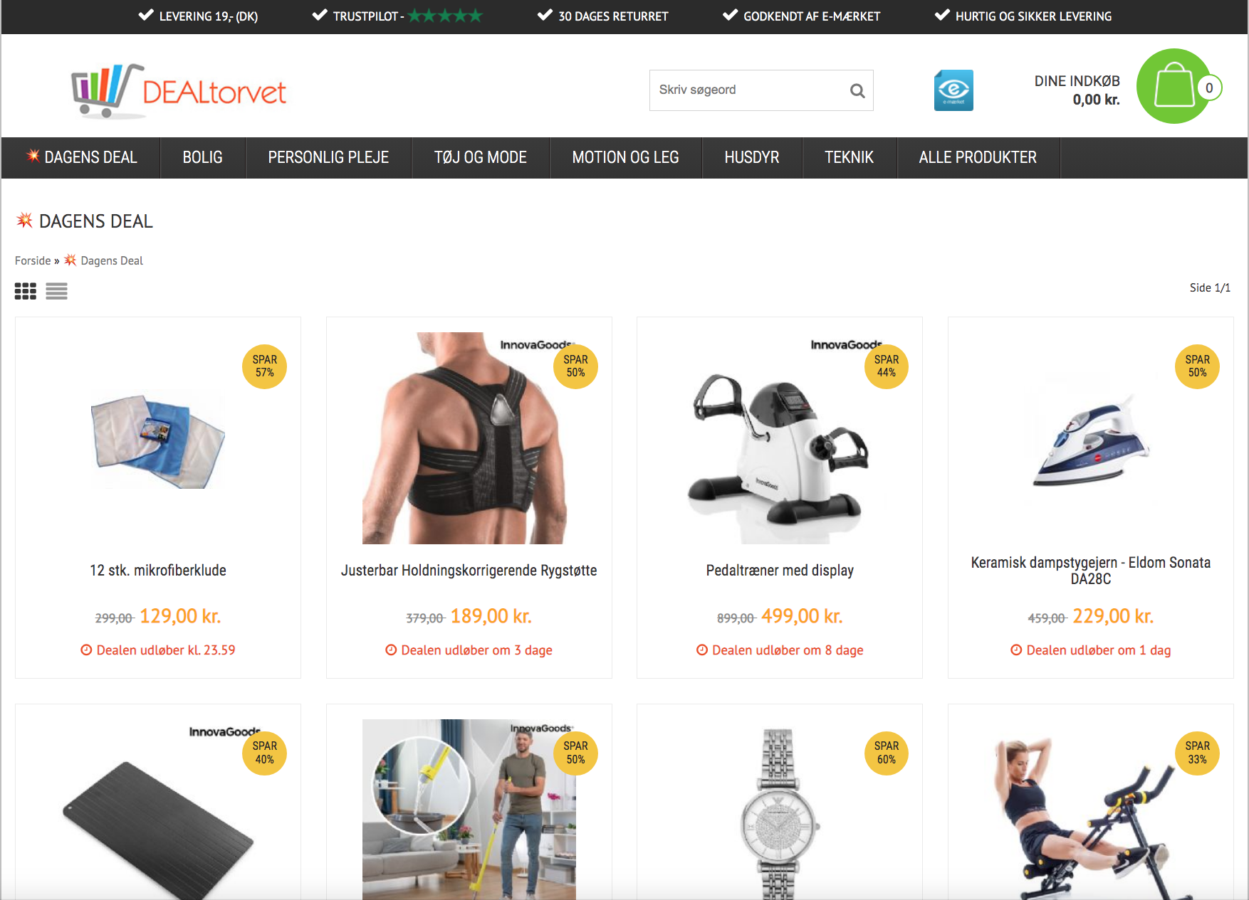 Her tilbydes du en kendt veldrevet onlineforretning (Webshop) Dealtorvet.dk med tilhørende salgsaktiviteter, leverandører, dropshippingaftaler og transportaftaler.