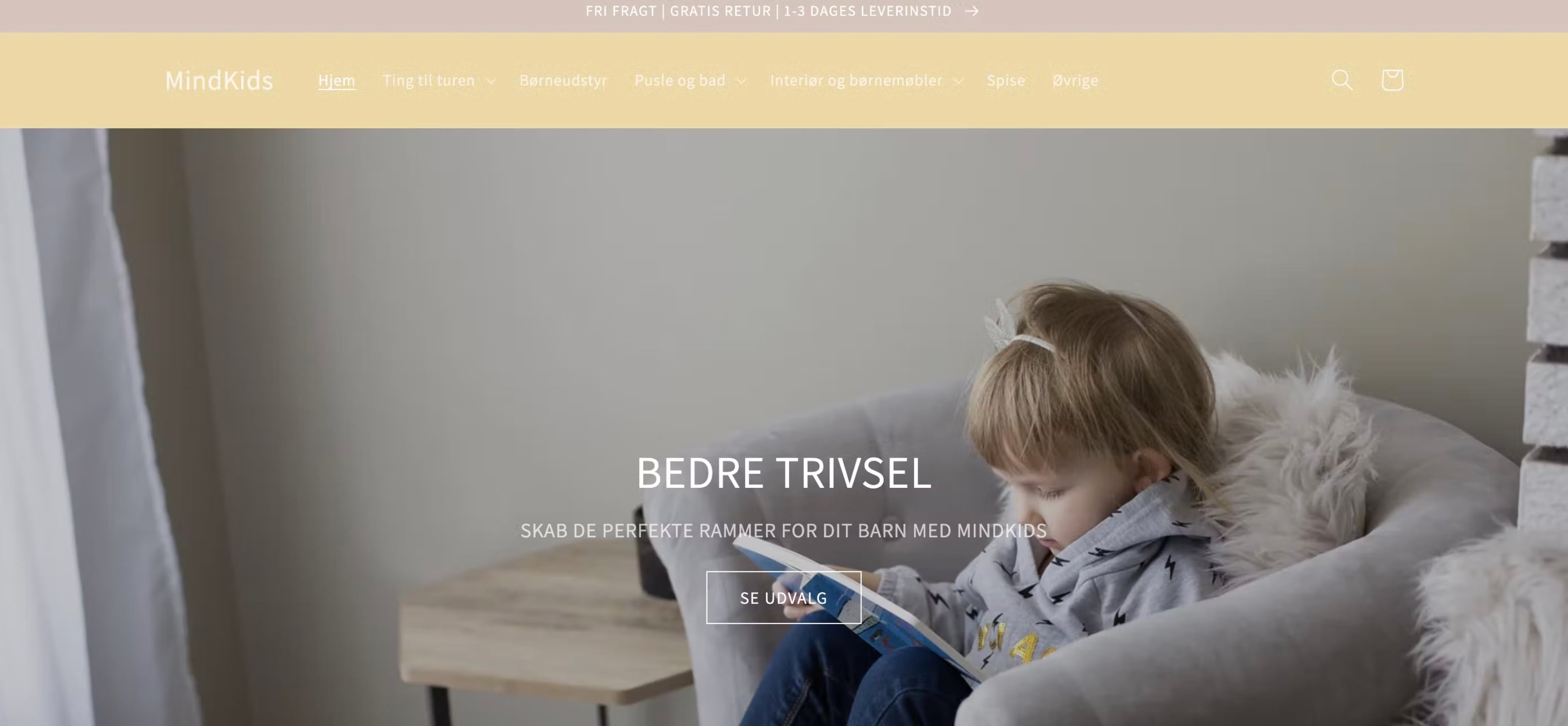 Sidder du inde med en drøm om at blive selvstændig og have din egen webshop, så er du kommet det helt rigtige sted. MindKids er en webshop som forhandler børneudstyr, børnemøbler, legetøj mm af høj kvalitet og med fokus på miljøvenlighed. Selve fundamentet for shoppen er bygget op omkring dropshipping i gennem en dansk leverandør. Leverandøren tilbyder et stort og bredt udvalg af varer som man frit kan sælge i sin shop. Ønsker man på et tidspunkt at udvide til andre lande i Skandinavnien, så kan man også det da leverandøren også tilbyder levering til andre lande i Skandinavien. Leveringstiden i Danmark er på 1-3 dage med god avance på produkterne.