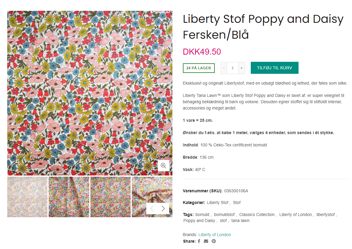Webshop med salg af de populære og luksuriøse metervarer fra Liberty of London, som det primære fokus. Elfie.dk har hele 5 ud af 5 stjerner på Trustpilot med 200 anmeldelser.