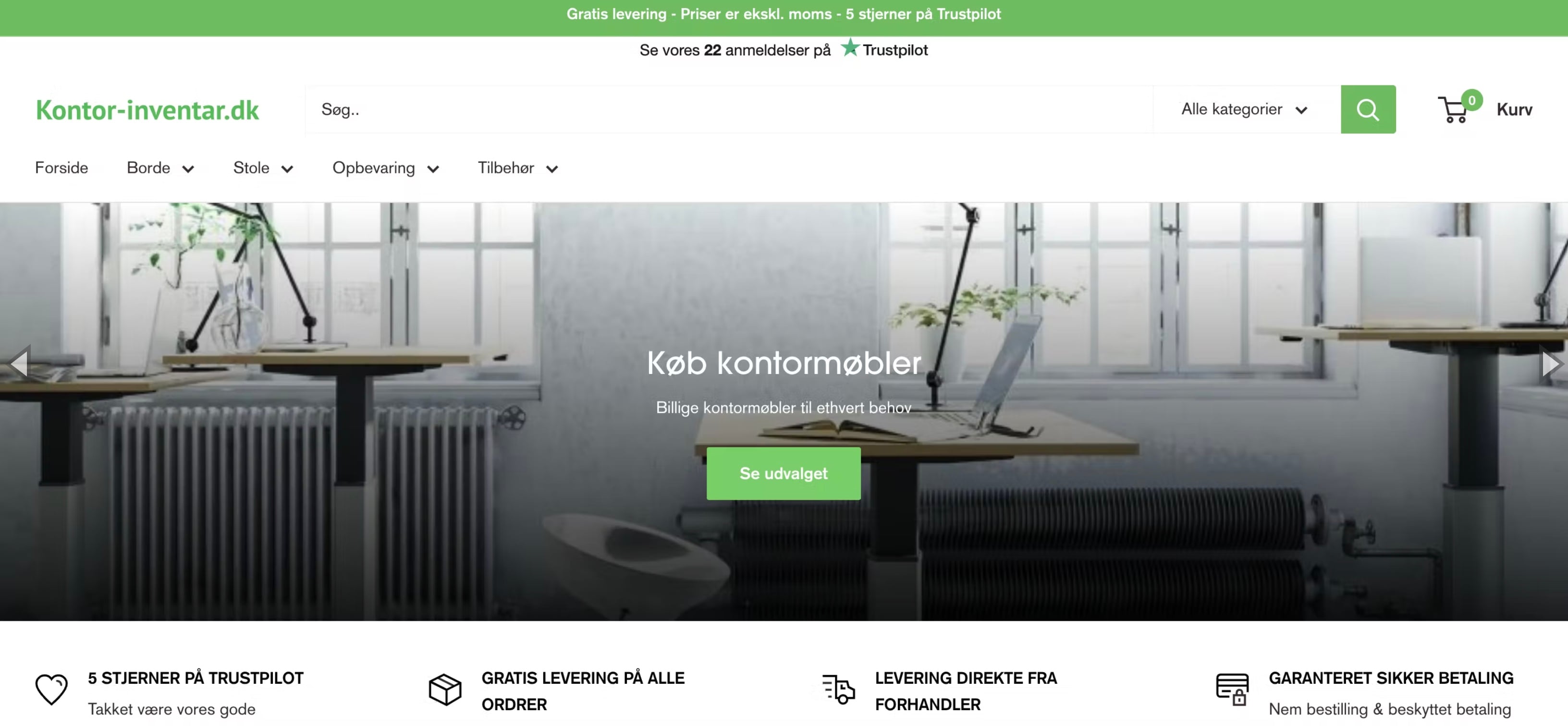 Vi sælger både B2B og B2C. Udover salg gennem hjemmeside, har vi også en del salg ved siden af, gennem større tilbud til virksomheder. Vi sælger kvalitets kontormøbler som hæve sænkeborde, kontorstole og andet inventar til kontoret.