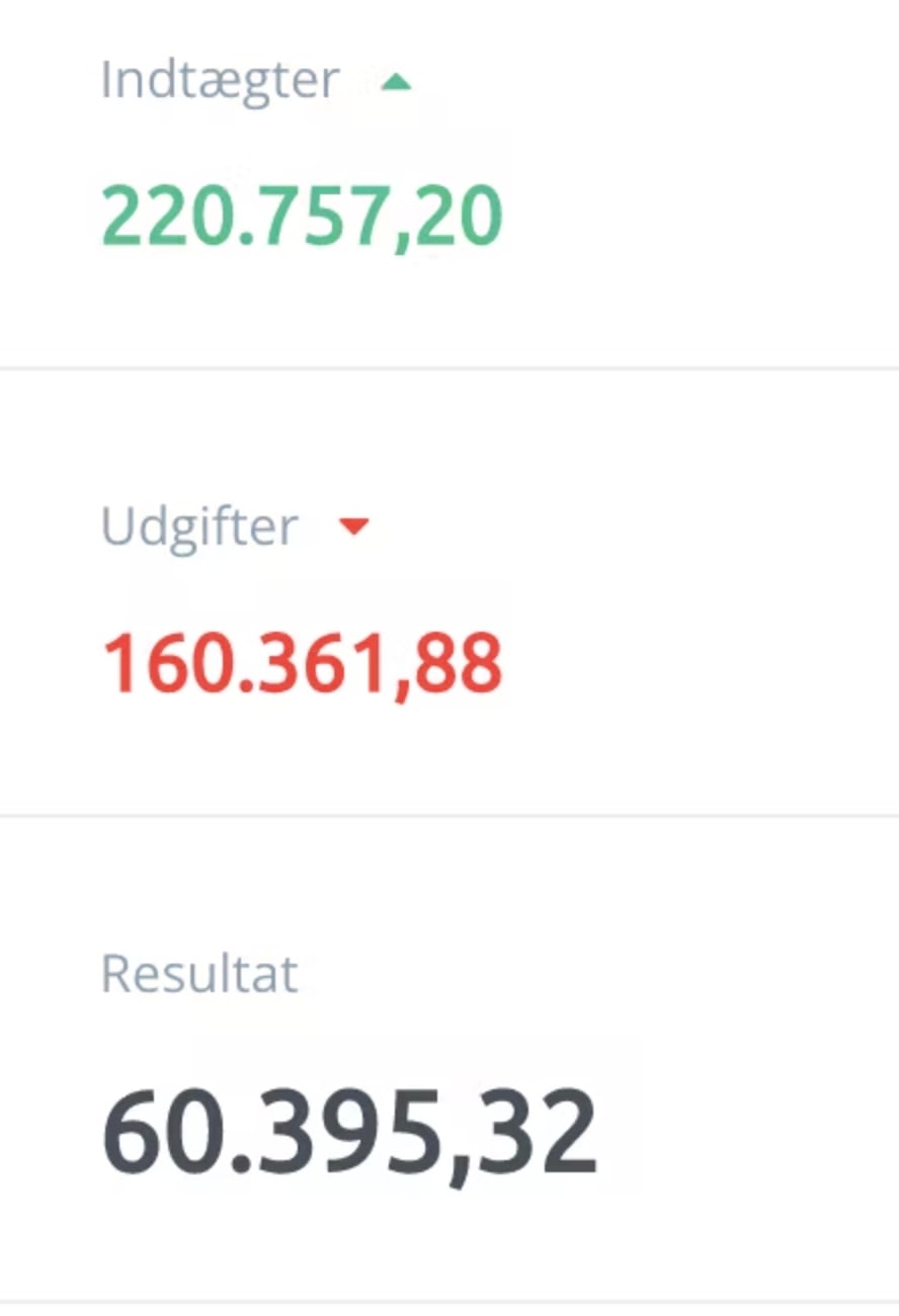 Udgifter: 225.455,49 (Gebyrer, varekøb, shopify, hosting)