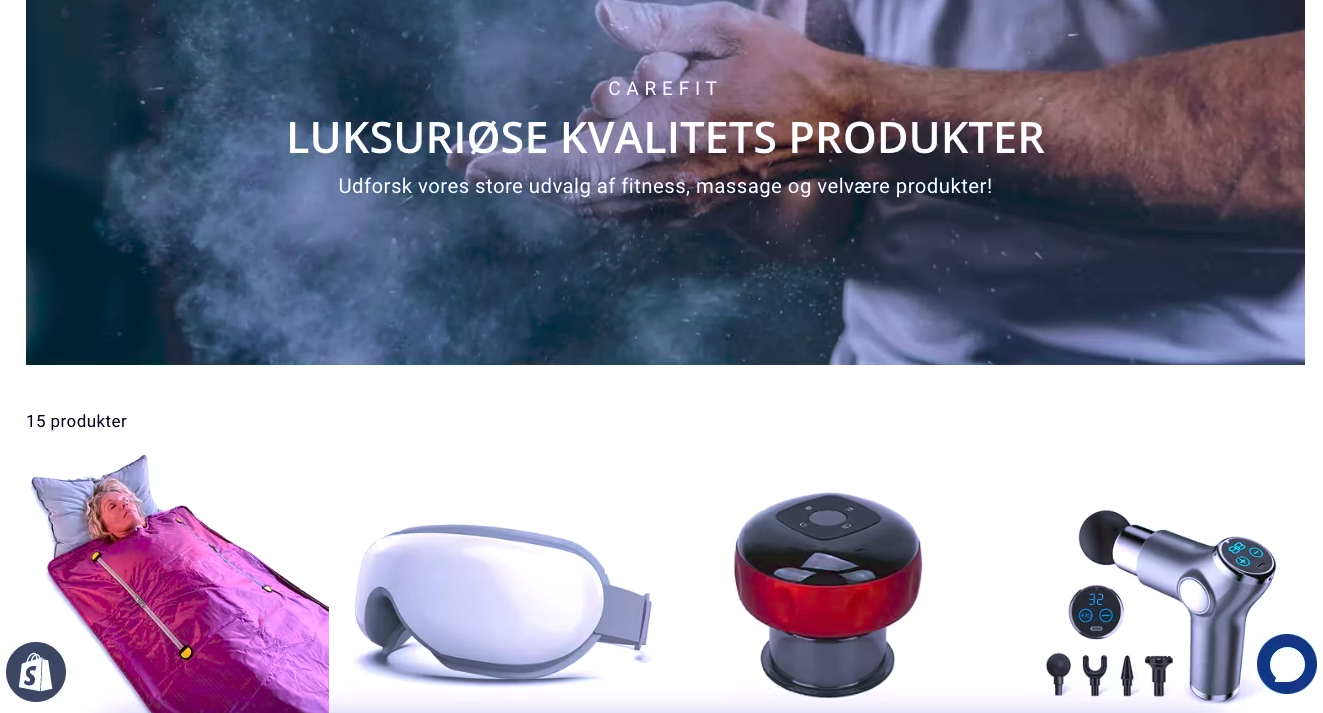 CareFit sælger produkter inden for kategorierne fitness, massage og velvære. Vores produkter giver sundheds effekter for kunderne både fysisk og psykisk. Disse produkter hjælper kunden forbedre deres daglig dag, samt sundhed og overall livsglæde. Vi sælger top moderne og trendy produkter, som infrarød sauntæppe, recovery boots, eye massager, elektrisk cupping, infrarød masage pude og meget mere.