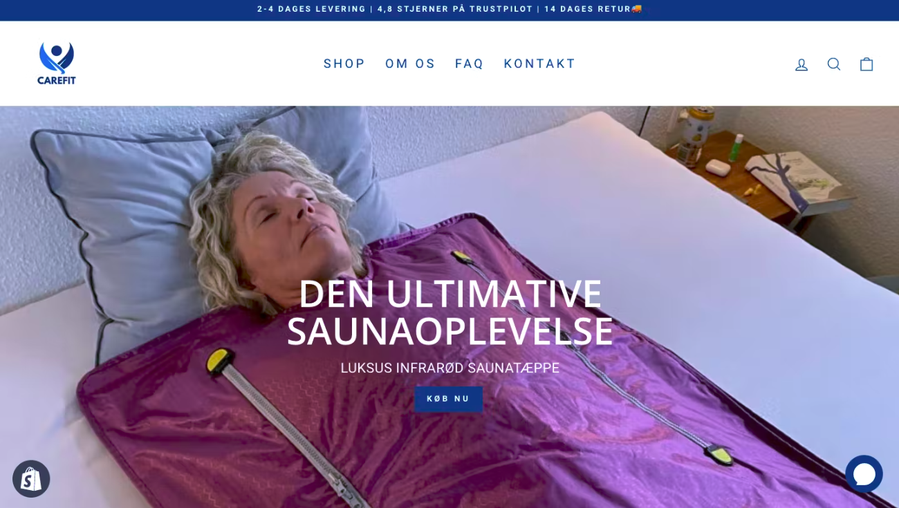 CareFit er en ny dansk dropshipping webshop på markedet og har været i gang siden august 2022. CareFit sælger produkter inden for kategorierne fitness, massage og velvære. Vi levere alle vores produkter fra vores fantastiske leverandør i Tyskland med fragt fra PostNord. Vi tilbyder gratis fragt med 2-4 leveringsdage til alle kunder i Danmark. Shoppen har opnået en flot omsætning på over 100.000 kr. I en periode fra den 19. August til 31. januar 2023. Vi opnår salg stort set alle ugens dage. Vores bestseller og stor favoritten hos vores kunder er på nuværende tidspunkt vores luksuriøse infrarøde saunatæppe med lækkert design og komfort. CareFit er i positiv udvikling og opnår højere og højere omsætning for hver måned. Fx: Januar måned opnåede vi en omsætning på 30.000 kr. Ved brug af Facebook/instagram annoncering og med opsætning af et avanceret email flow på webshoppen gennem et marketing bureau til en værdi af 15.000 kr. Vi har over 45 trustpilot anmeldelser alle sammen 5 stjernet. Vi har opnået en stor følger basse på Facebook, Instagram og TikTok med over 2750 følgere i alt. Vi har trofaste kunder, som vender tilbage igen og igen efter deres første køb. Det er en god investering nu eftersom det er en ny forretning på markedet, som er i høj vækst og med et kæmpe potentiale for stor udvikling. Indenfor den her branche, er der rigtig mange muligheder for produktudvidelse, som kan sættes op uden problemer med vores leverandør. Alt dette og meget mere følger med i købet af shoppen.