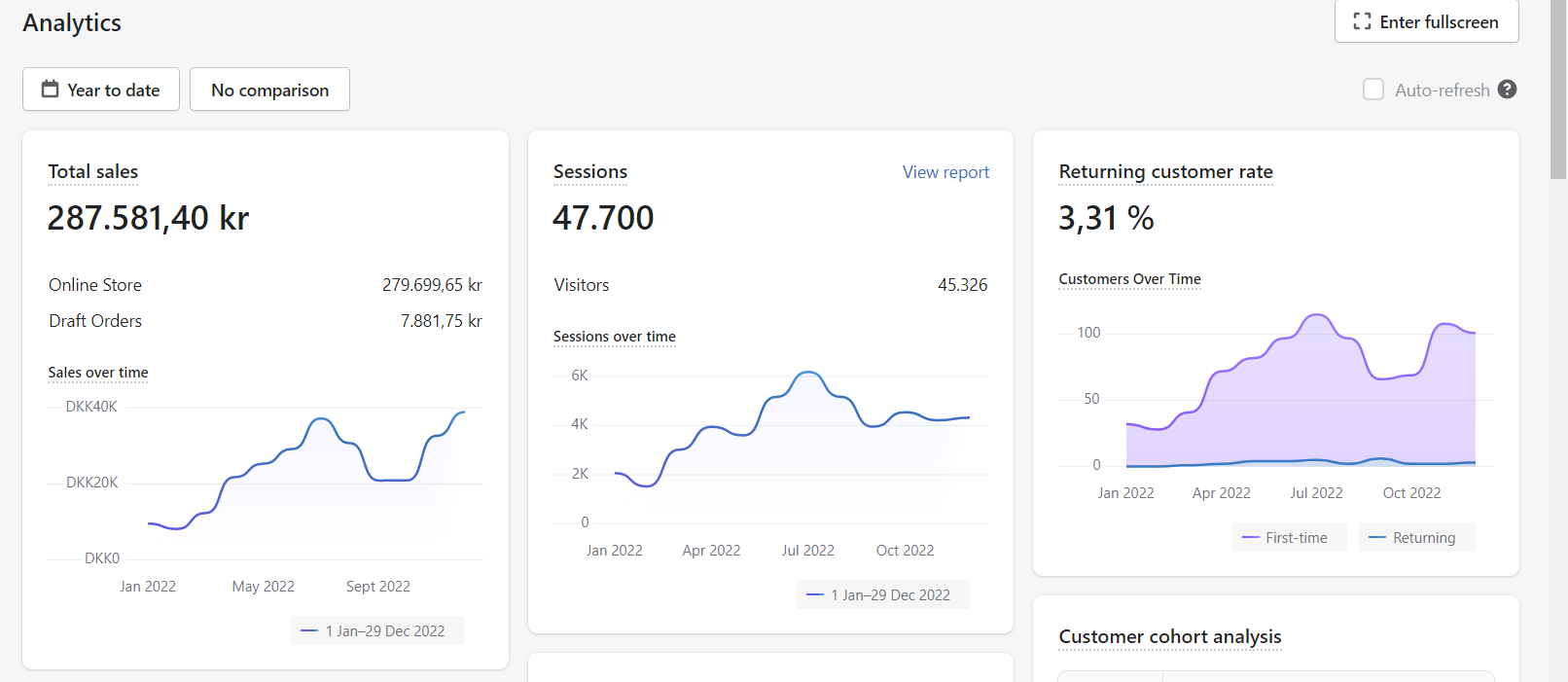 Omsætning 2022 på 231.000 (ex. moms) med en fin dækningsgrad på produkterne. Dette er med 53.000 kr. brugt på markedsføring i form af simple sponsorerede annoncer/boostede opslag på Facebook og her kunne det naturligvis være spændende at prøve at eksperimentere med Google Ads o.lign.