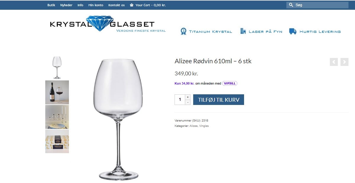 Webshop med krystalglas i top kvalitet fra Tjekkiet.