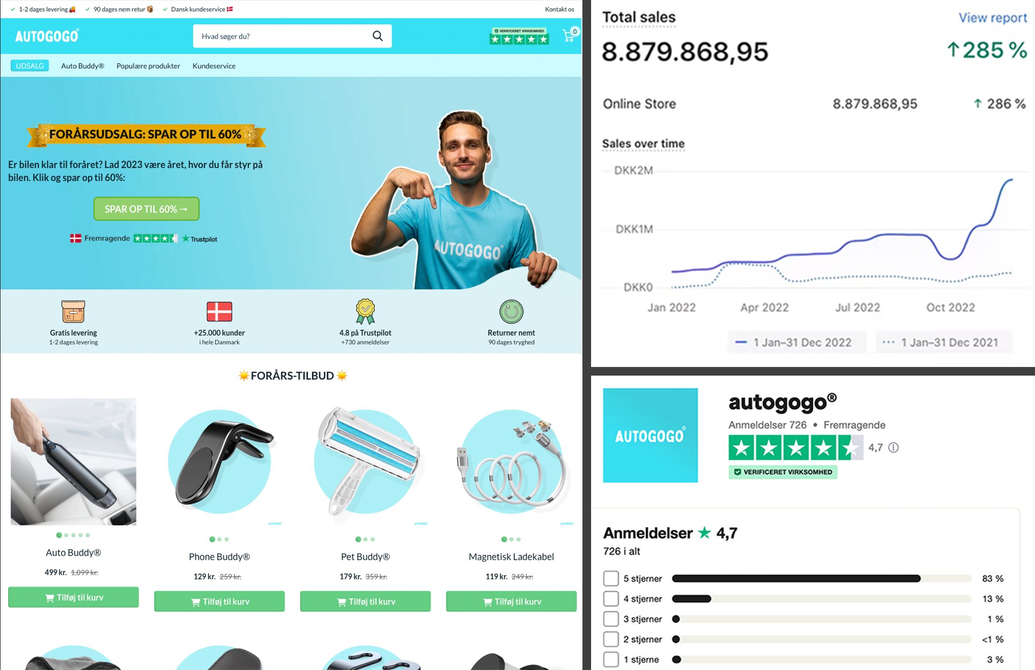 I november og december blev der omsat for 3 mio. med 300k i profit. +730 anmeldelser på Trustpilot. +25.000 læsere af nyhedsbrev.