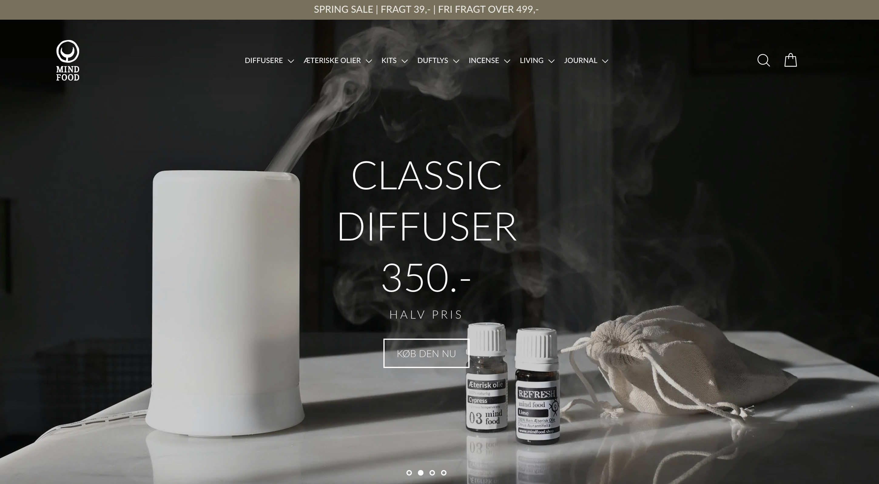 Mind Foods vibrerende DNA omfavner alt der har med ‘home scent’ at gøre - og lidt til. Dog har vi et mantra: Vi vil bruge botanikkens og aromaterapiens årtusinde lange historie som fundament, så man kan tilvælge Home Scents i et mere naturligt, transparent og bæredygtigt format. Derfor er vores rettesnor “Made on Earth”. Vores hovedprodukt er vores gennemdesignede aroma-diffuser CLAY - som både har funktionalitet og æstetik helt i top. Dertil har vi et økonomisk alternativ: En simpel og klassisk aroma-diffuser. Tilhørende har vi et større sortiment af 40 lækre æteriske olier i eget mærke. Til slut også duftlys, incense sticks og andre relaterede livsstilsprodukter.