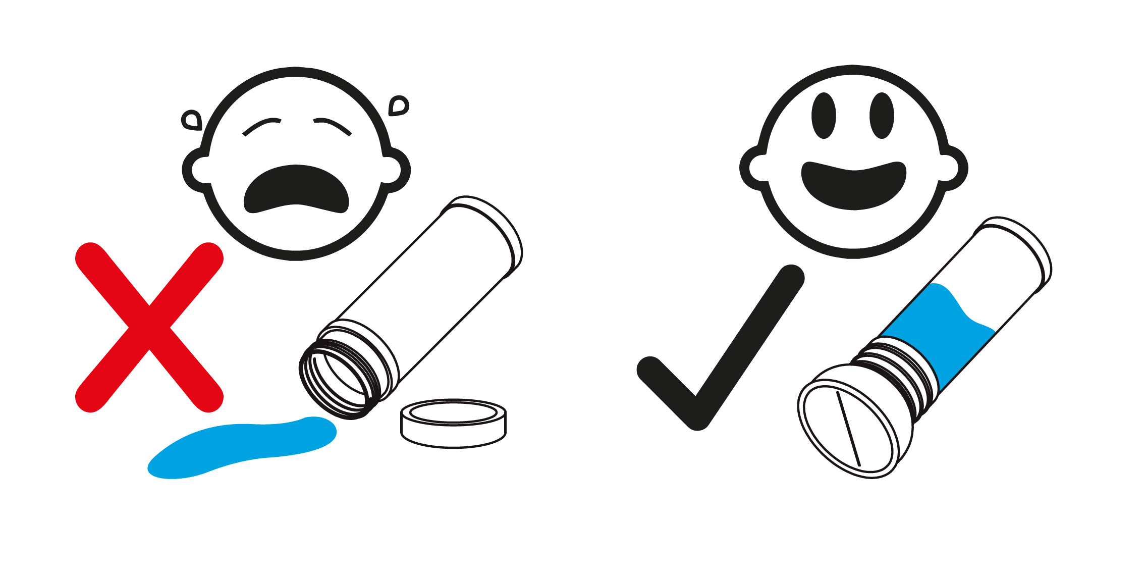 Det patenterede silicone låg påsættes sæbebobbel flasken, hvorefter der ikke løber sæbeboble væske ud hvis bøtten væltes eller vendes på hovedet. Passer til alle sæbe boble flasker på markedet.