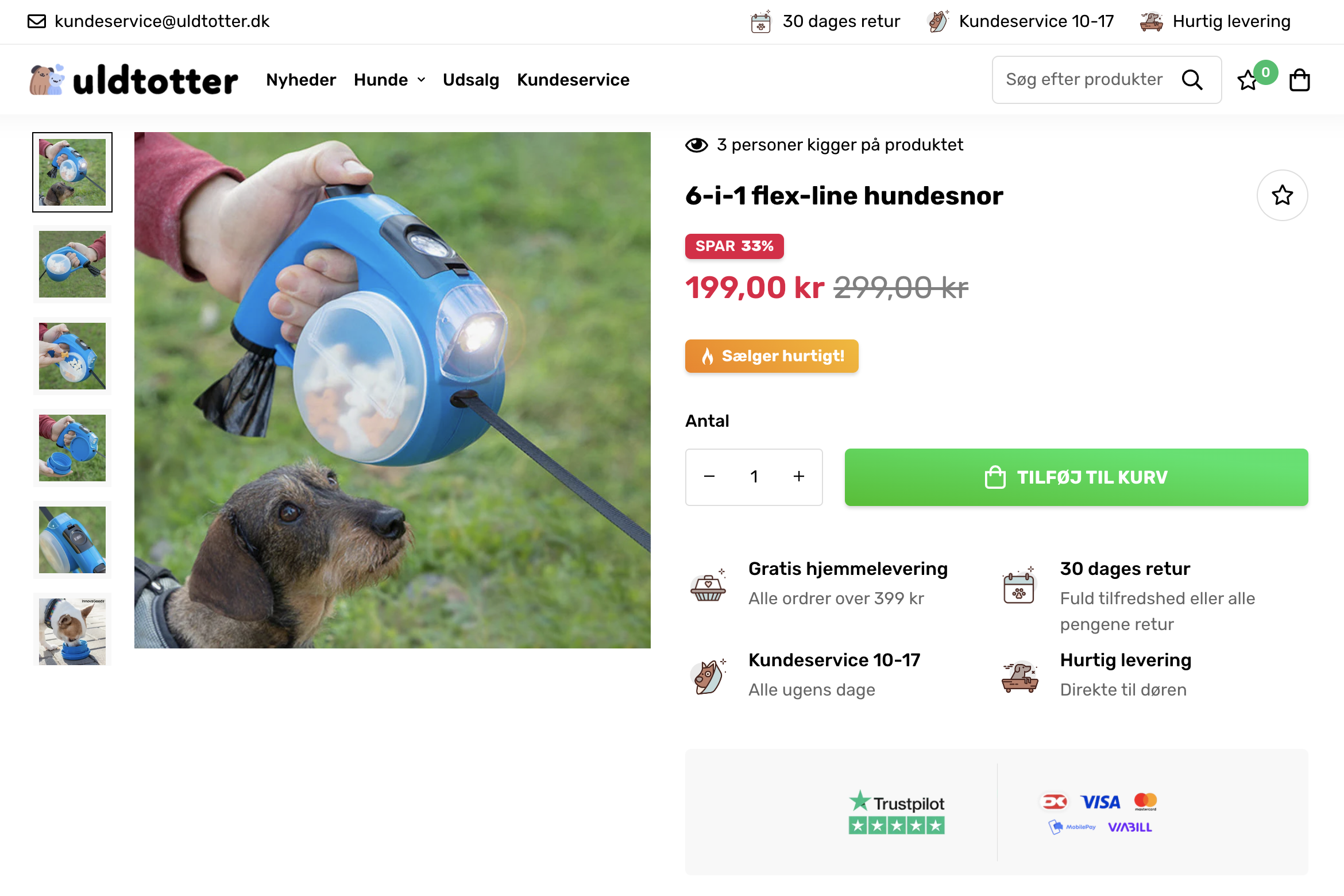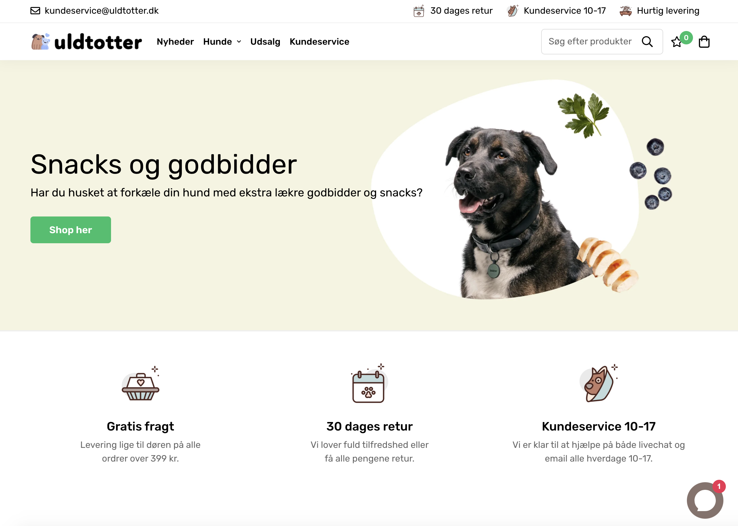 Uldtotter.dk sælger alt til hunde. Alt fra legetøj til foder. Der er mulighed for at udvide til flere dyr, igennem leverandøren.