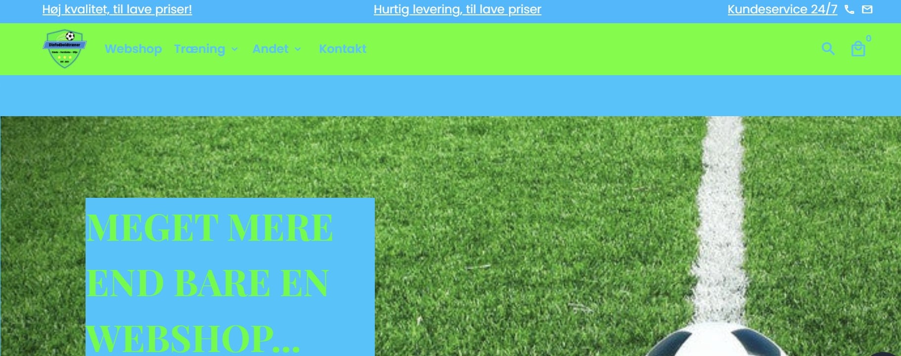 Dinfodboldtraener.dk er en fodboldwebshop der sælger fodboldudstyr i høj kvalitet, men med mulighed for et meget bredere sortiment, hvor andre sportsgrene kan inkluderes.