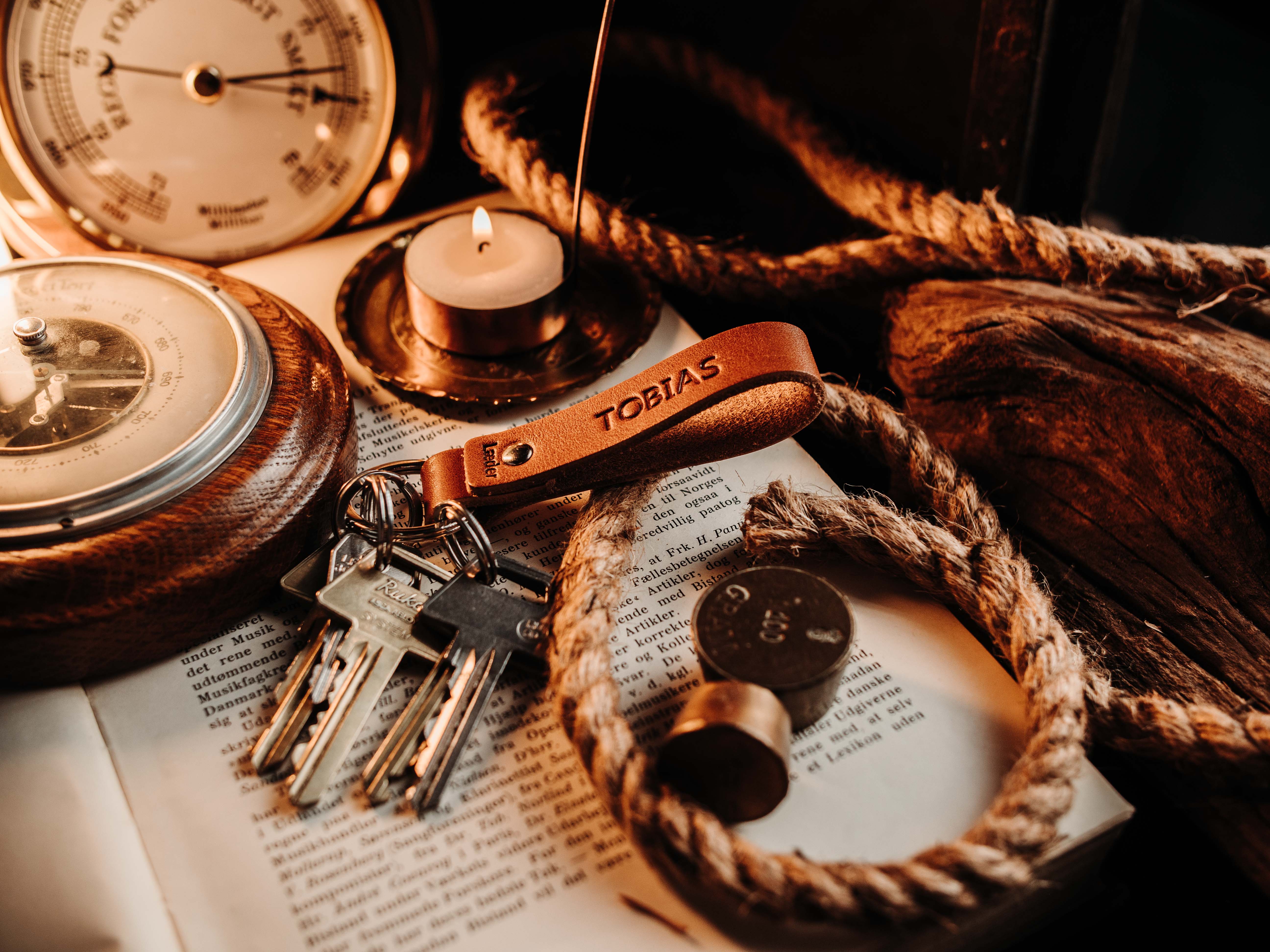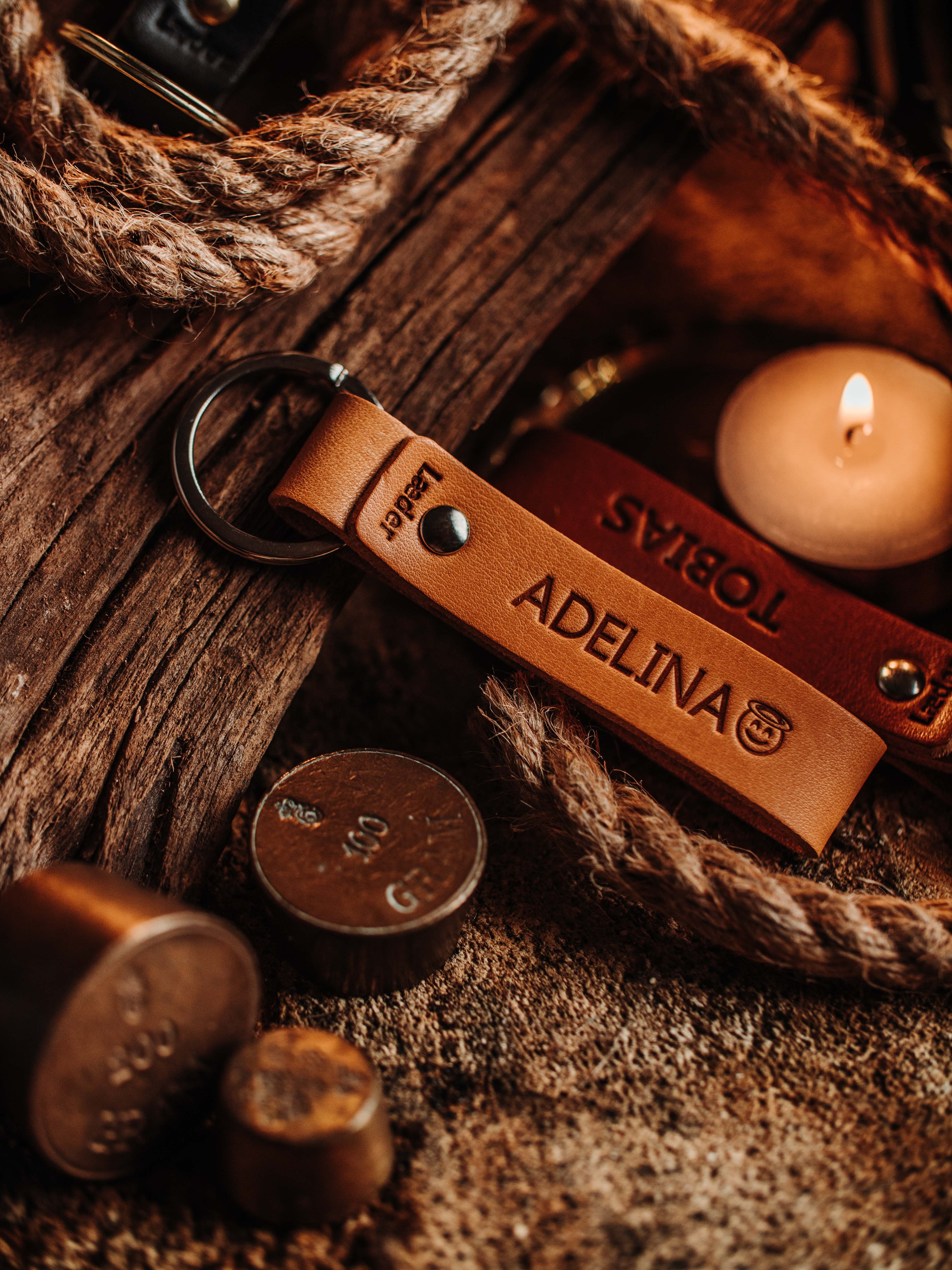 Personlige nøgleringe i læder. Meget høj kvalitet. Flere forskellige farver og kombinationer.