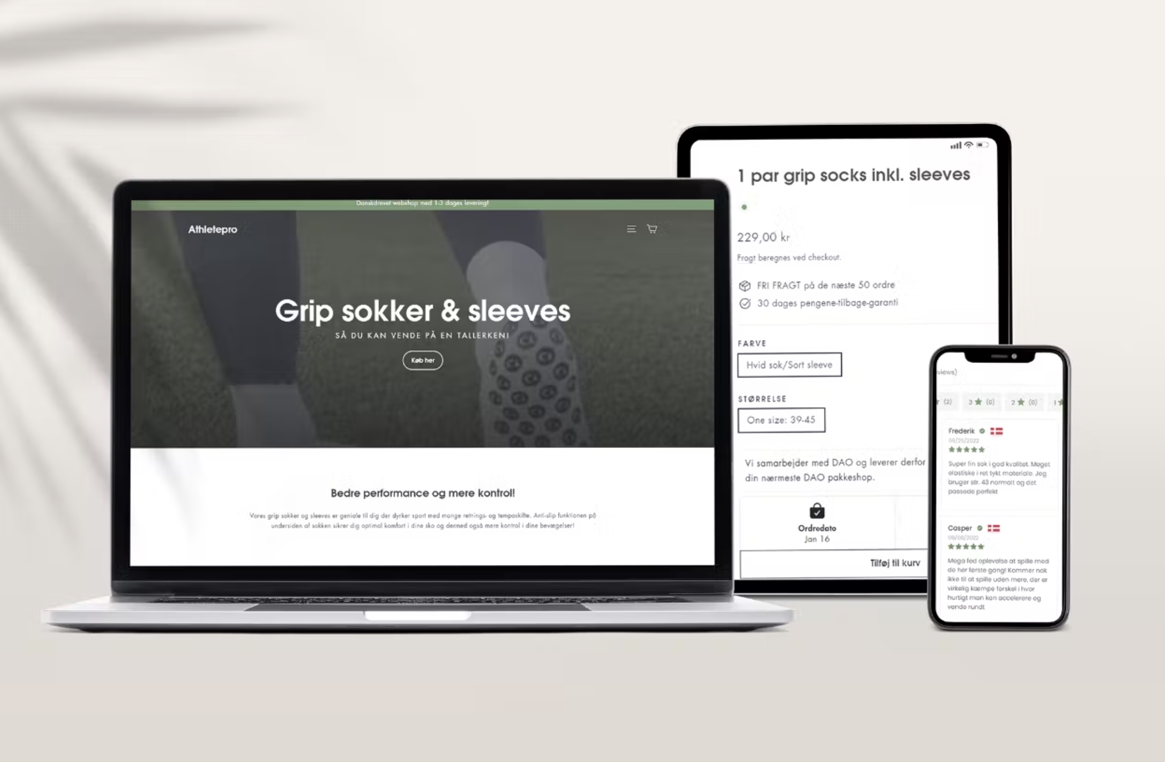 Nichedrevet webshop med salg af grip sokker til fodbold, tennis- og padelspillere. Rig mulighed for udvidelse af sortimentet grundet det gængse domænenavn. Der er lagt mange timer i forretningen, og det har bl.a. ført til en placering på side 1 af Google på søgeordet "grip sokker". Webshoppen er lavet i Shopify, og er ikke bare stykket sammen på et par timer som man desværre ofte ser herinde... Der er tænkt rigtig meget i konverteringsoptimering og apps som kan øge købsbeslutningen hos kunderne.