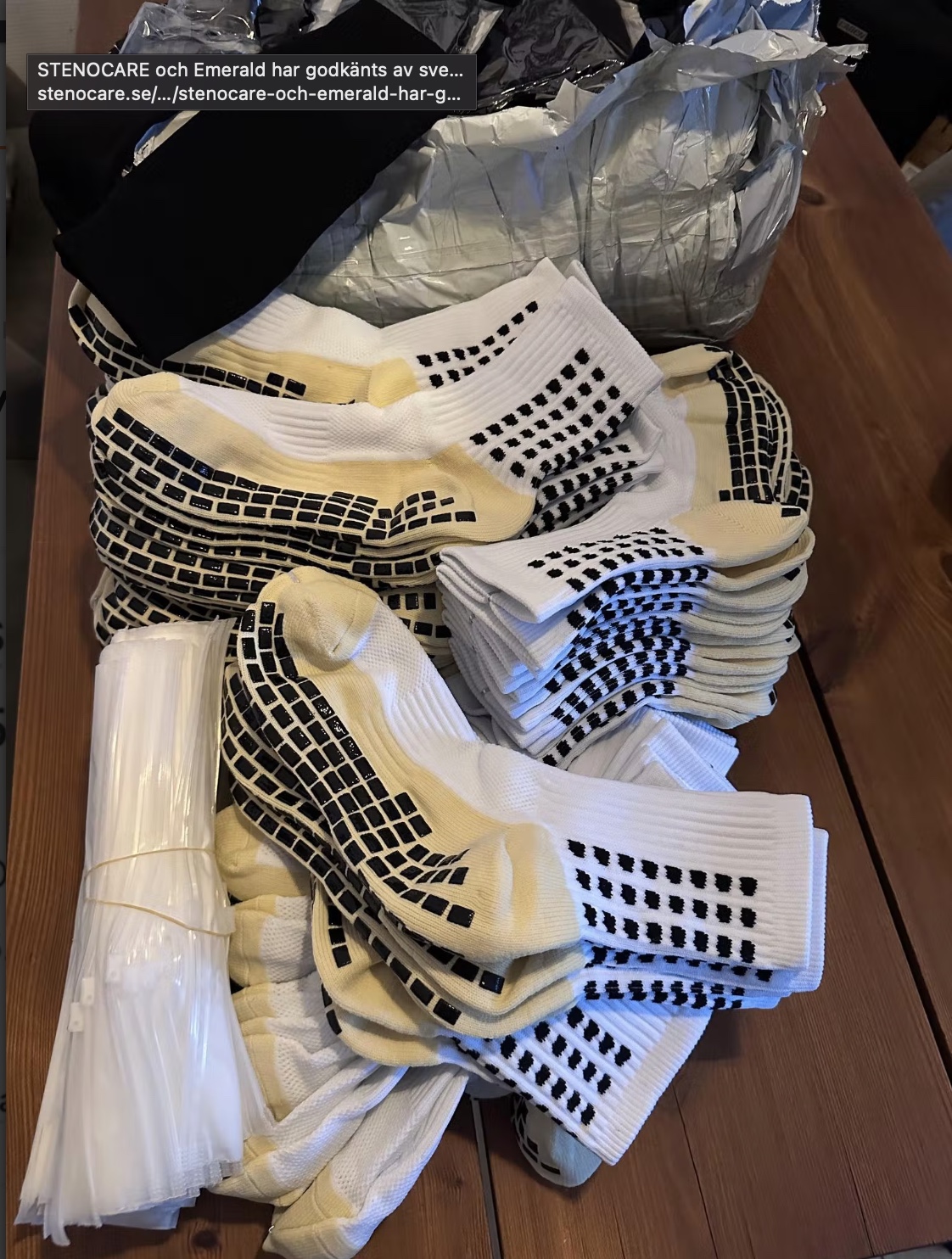 Produktet er pt. ubrandet, da der først er blevet kørt en testkampagne for at skabe proof of concept. Sokker og sleeves er købt hjem fra 2 forskellige forhandlere, men der er rig mulighed for at finde andre forhandlere!