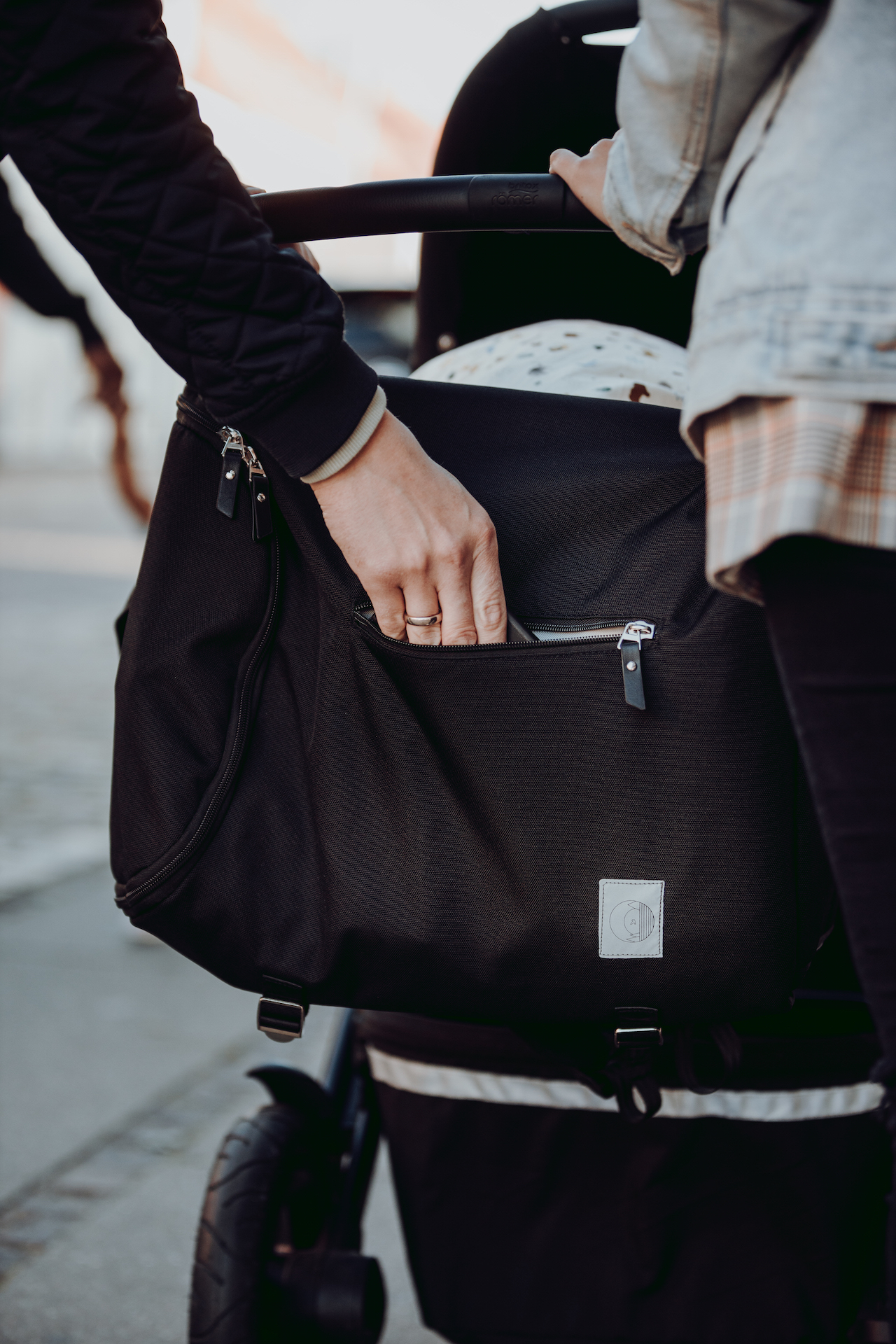 Fleksibilitet: De kan bæres som skuldertasker eller rygsække og kan let hænges på barnevognen. Desuden er der et indbygget pusleunderlag til praktisk brug.