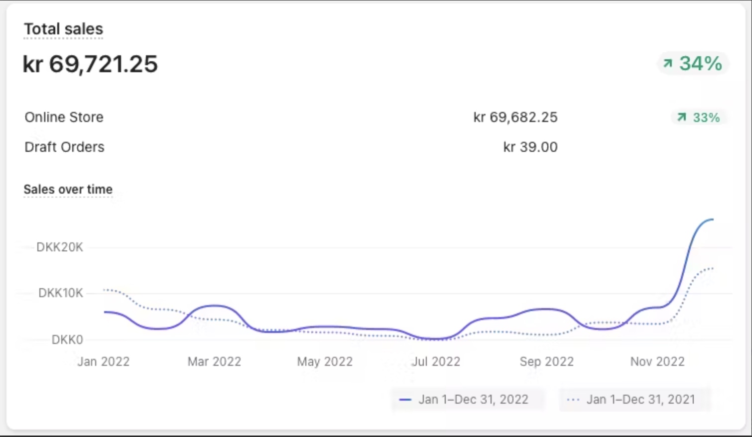 Den omsatte i 2022 for 69,721.25 kr. med 11.500 kr. brugt på Google annoncer. Det er 50/50 hvad der kommer af salg, igennem SEO som vi rangerer ret højt på, på f.eks. "arbejdslygter" mm.