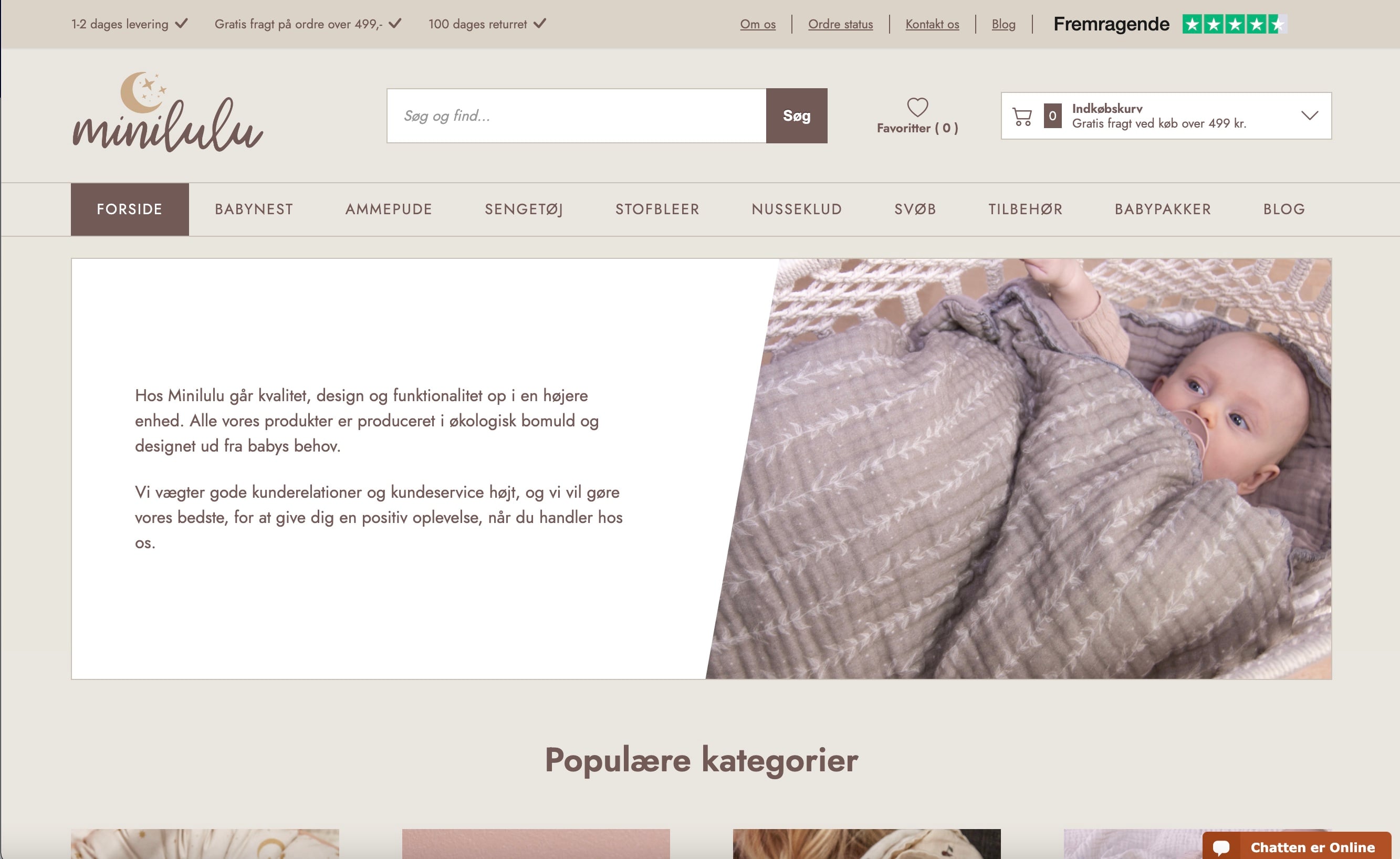 Hos Minilulu finder du meget mere end bare en webshop. Vi har skabt et univers for kommende og nybagte forældre, hvor vi gennem vores nyhedsbreve, SoMe kanaler og blog deler inspiration til alt fra opskrifter, aktiviteter med baby/børn og info om barnets udvikling.