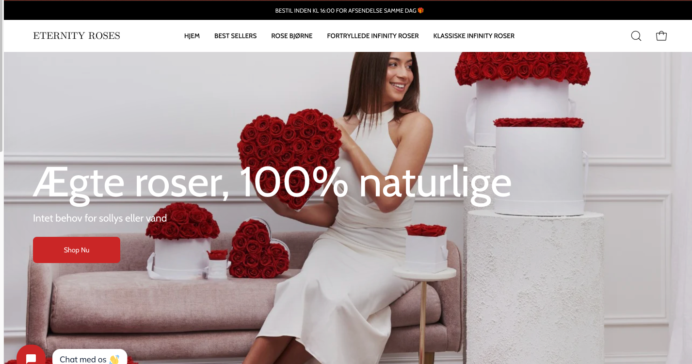 Eternityroses.dk er en webshop der fokuserer på at levere gaver lavet af roser til fødselsdage, morsdag, valentines dag, bryllupper og flere begivenheder.