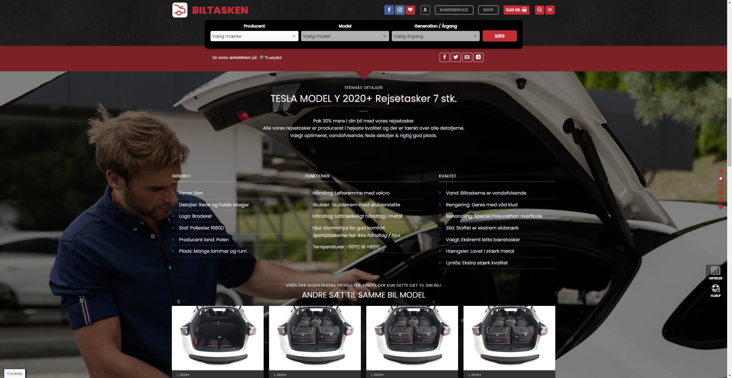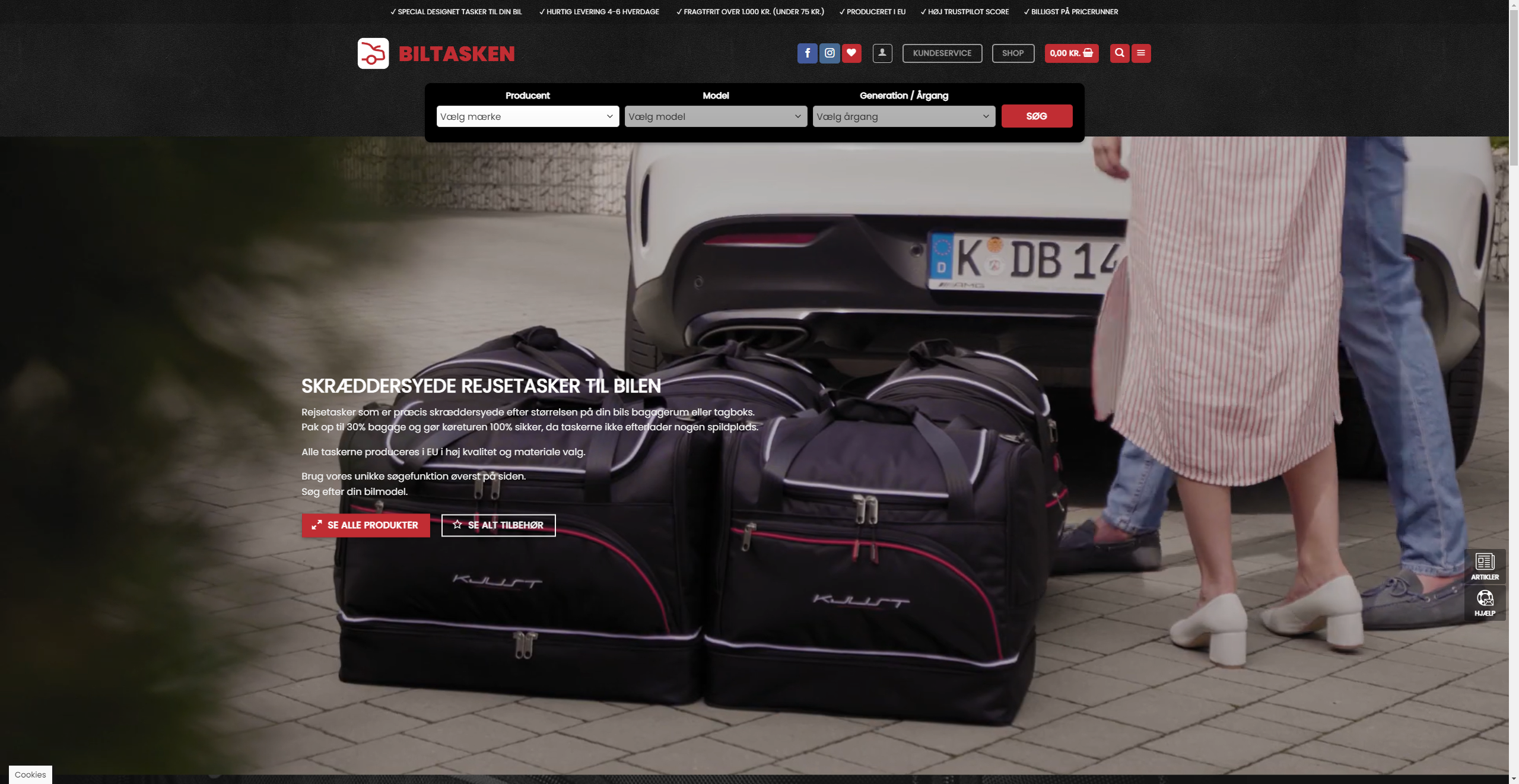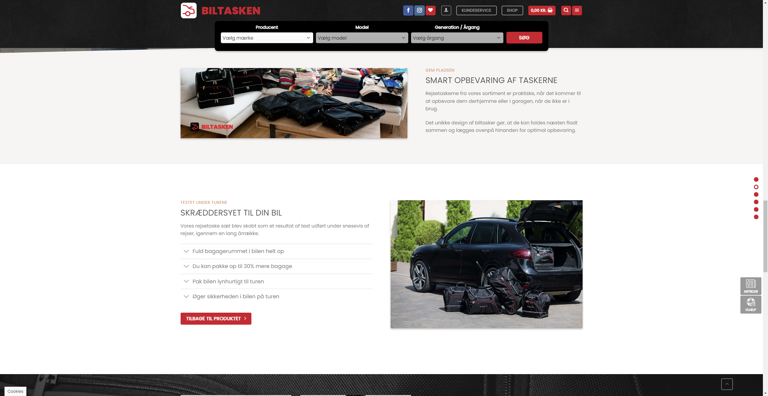 Dedikeret webshop med salg af skræddersyede biltasker til specifikke bilmodeller
