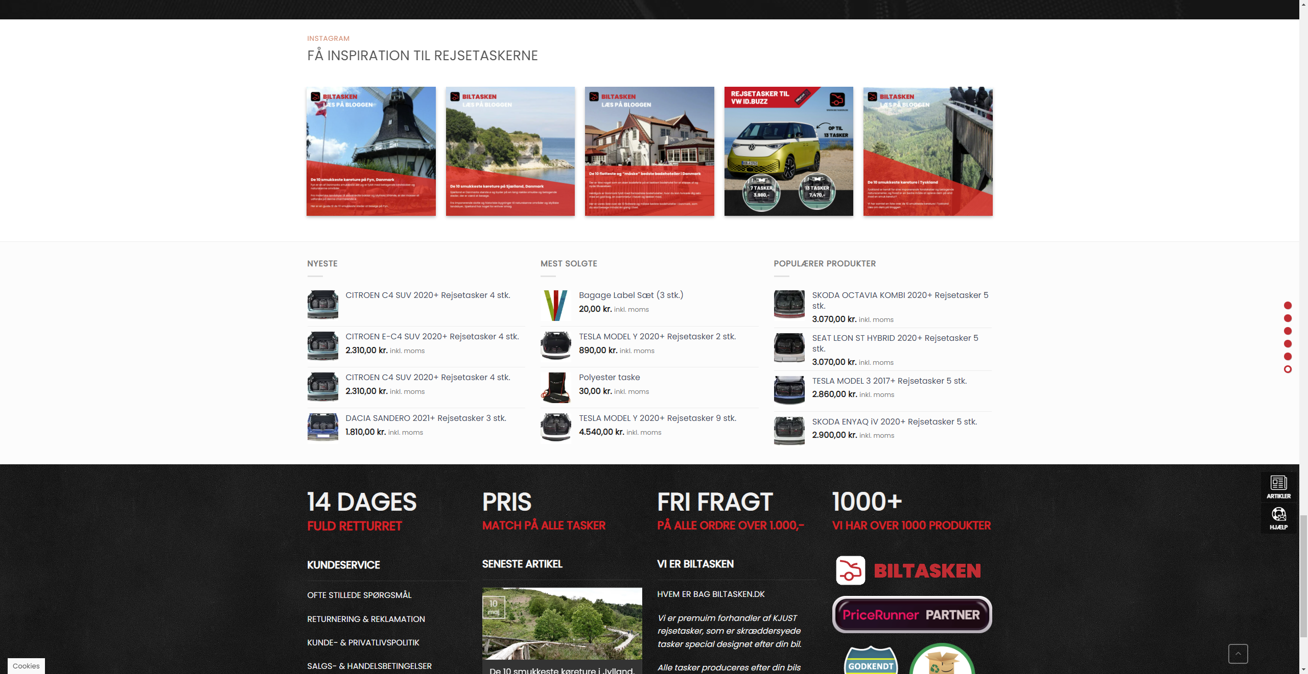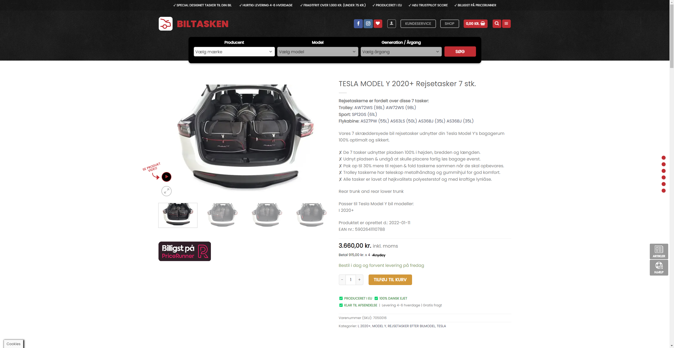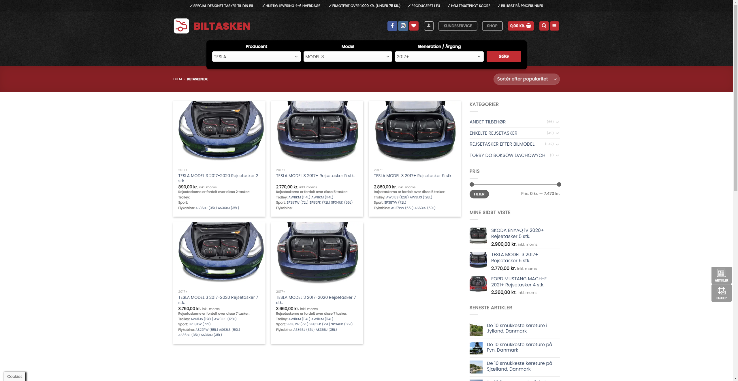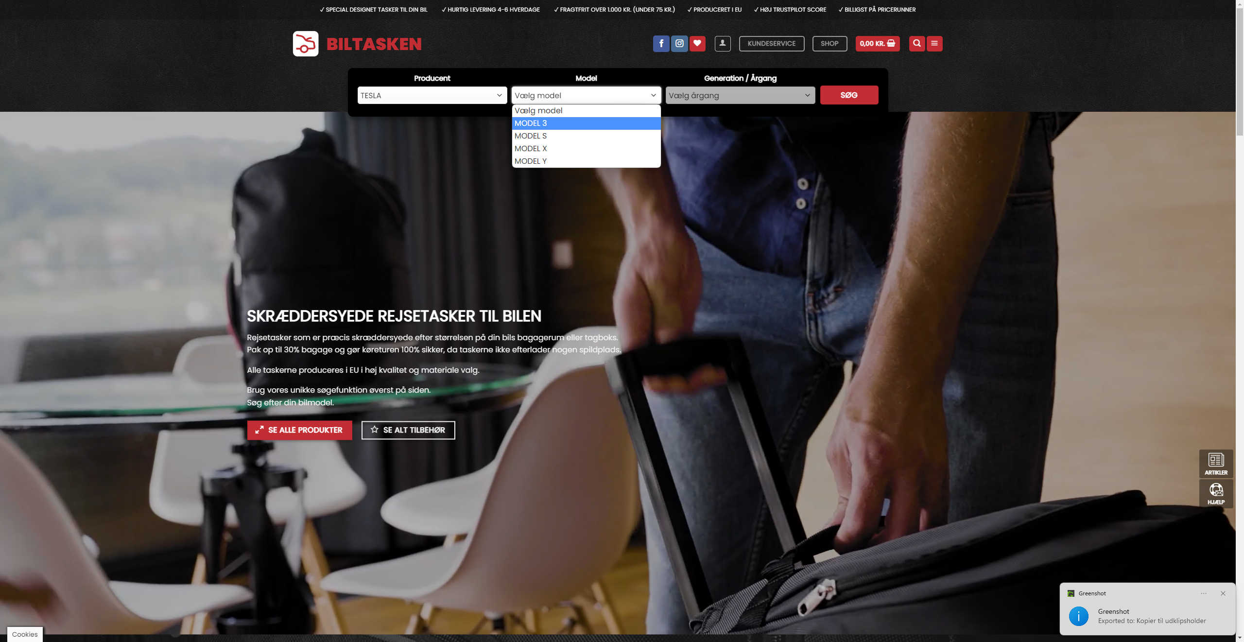 Dedikeret webshop med salg af skræddersyede biltasker til specifikke bilmodeller