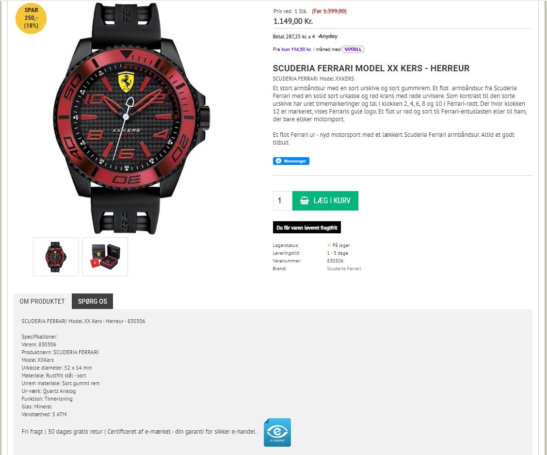 Uregiganten har i konkurencen slået på at have nogle af markedets laveste priser, hurtig levering (dag-til-dag), nem returpolitik og så et meget højt serviceniveau. Dette går også igen i bedømmelserne og de 5 stjerner på Trustpilot.