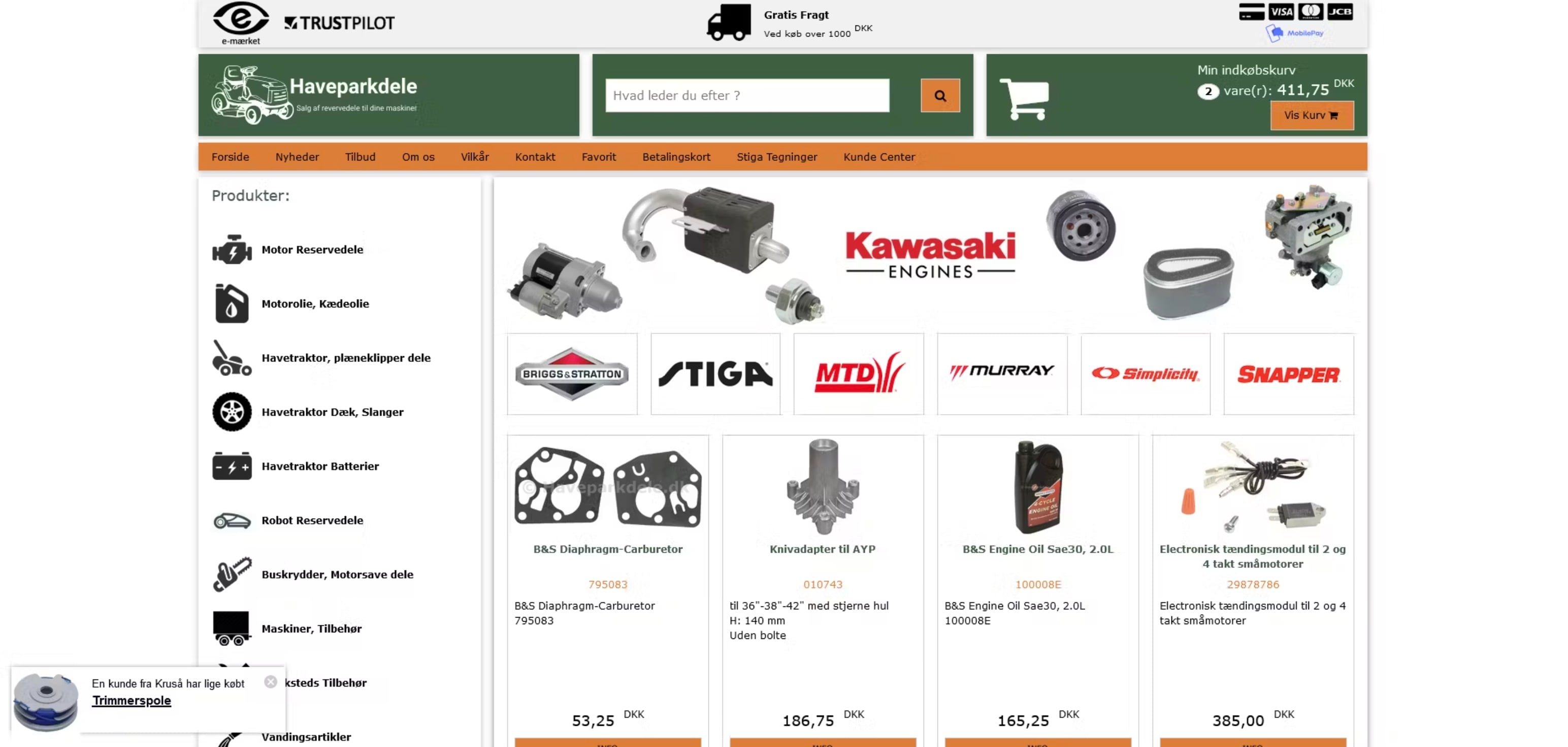 Haveparkdele.dk til salg - Omsætning 3.465.000 kr - Reservedele til have park maskiner