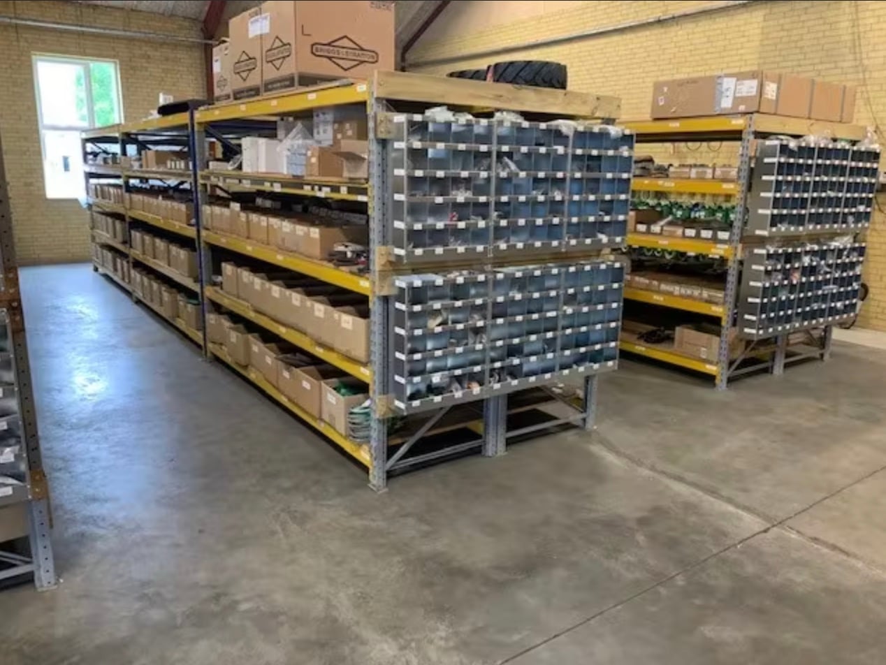 Vi køre med egen lager app og lokation på hylderne, så 2 personer kan nemt klare arbejdet med pakning