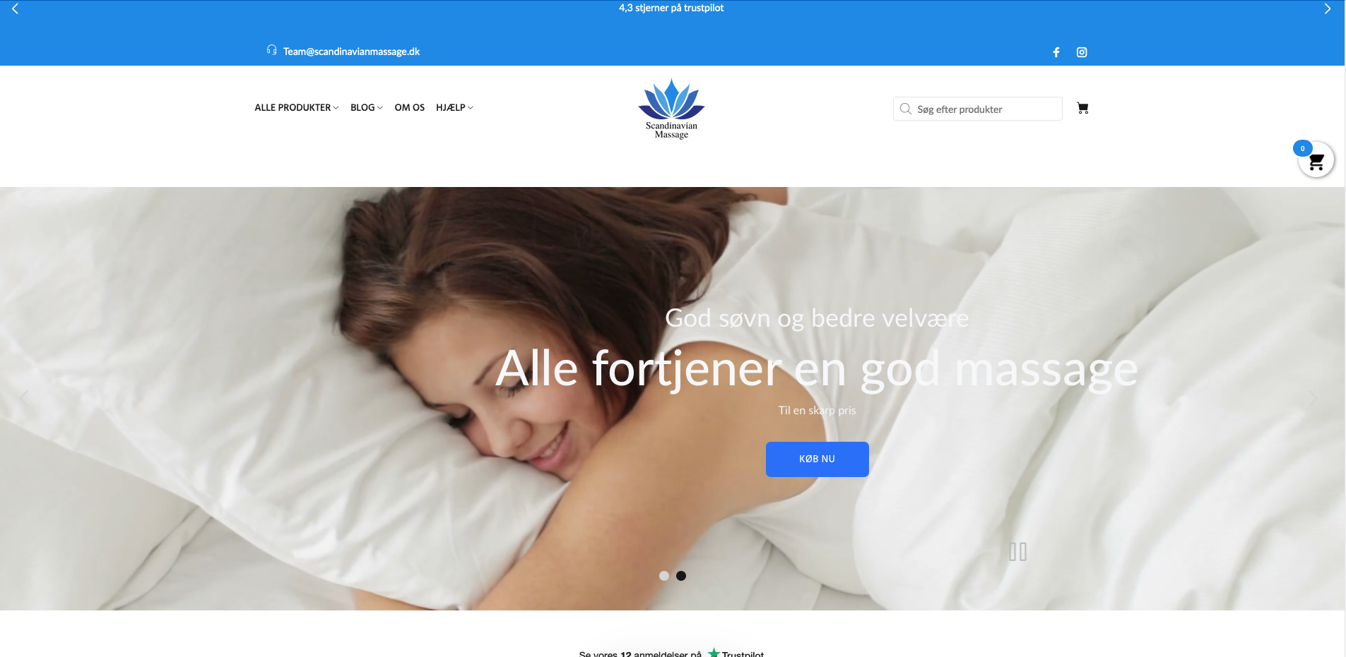 Scandinavian Massage er en dansk webshop, med et stort potentiale både i danmark og i udlandet. Virksomheden tilbyder lækre massageapparater til forskellige kropsdele. Efter at vi deltog til et arrangement, kunne vi bekræfte at der var stor interesse for vores produkter. Med den rigtig marketingsstrategi, så vil man kunne opnå gode resultater indenfor salg af massageapparater. Virksomheden har flere tilfredse kunder både på trustpilot og på vores hjemmeside. Desuden tilbyder virksomheden både kendte produkter så som massagepistoler, og unikke produkter så som håndmassageapparat og saunatæpper.