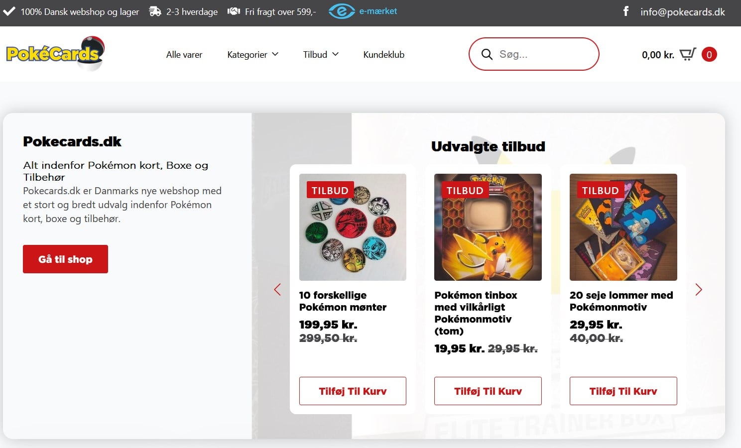 Pokémon shoppen har stort udvalg af Pokémon kort, boxe og tilbehør.