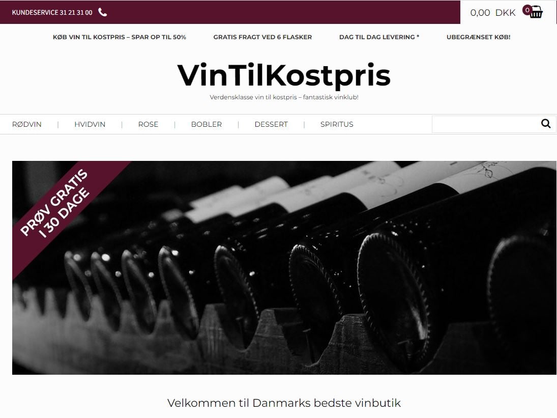 Velfungerende vin webshop med super godt domæne, da vores fokus ligger på andet forretningsområde.