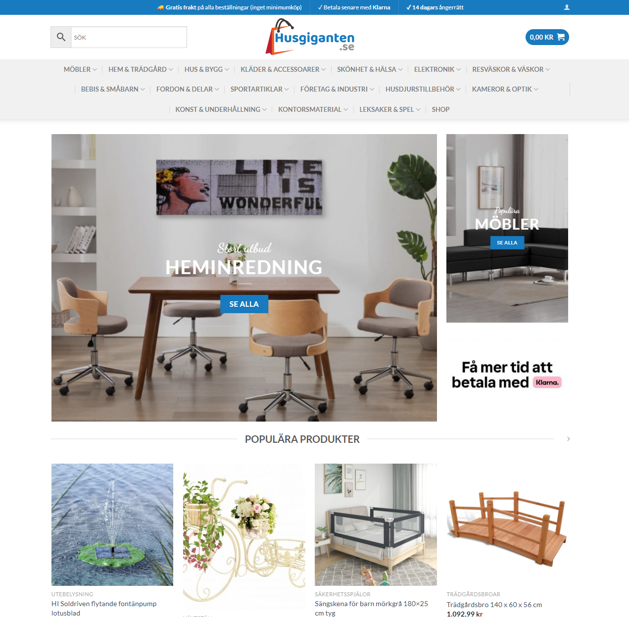 Husgiganten.se er en svensk webshop der sælger over 87.000 forskellige møbel og boligartikler til privatkunder i hele Sverige og har gjort det siden 2021.