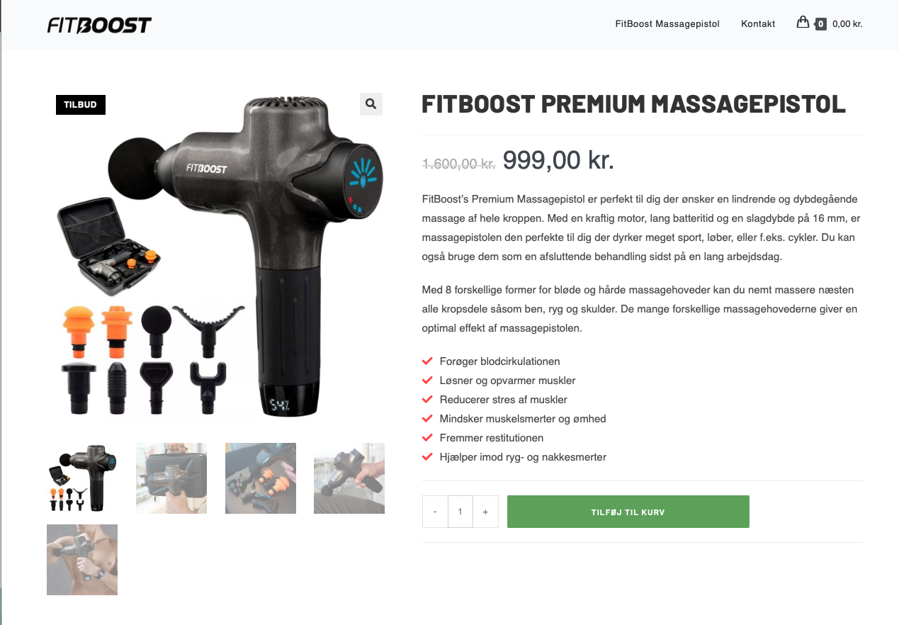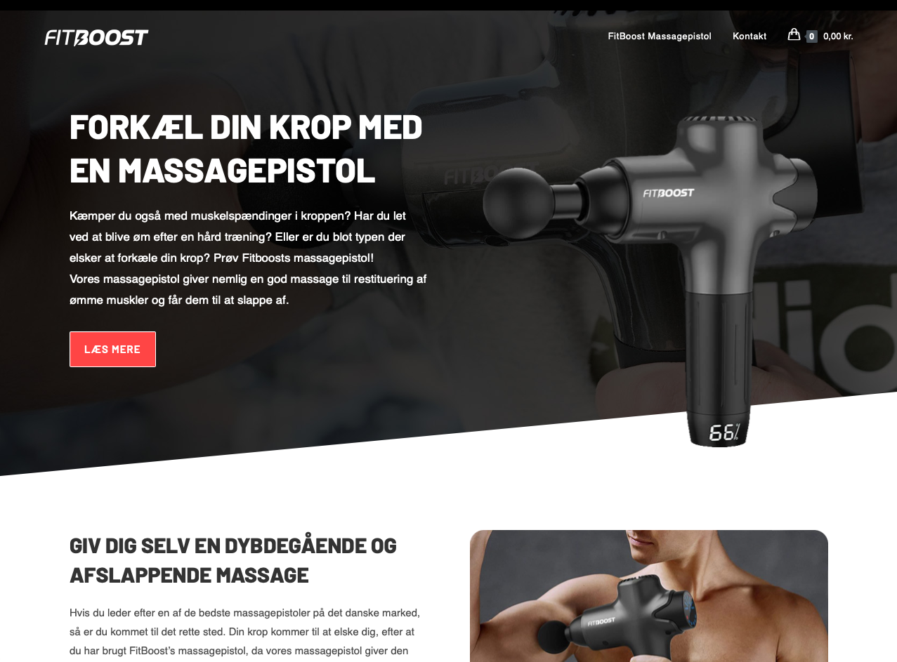 Vi sælger en køreklar webshop som sælger massagepistoler. Webshoppen er udviklet i Wordpress Woocommerce og har integration til Shipmondo. Det er en god webshoppen for dig der gerne vil starte med varelager, og massagepistolerne er af en yderst god kvalitet forhold til konkurrenterne.