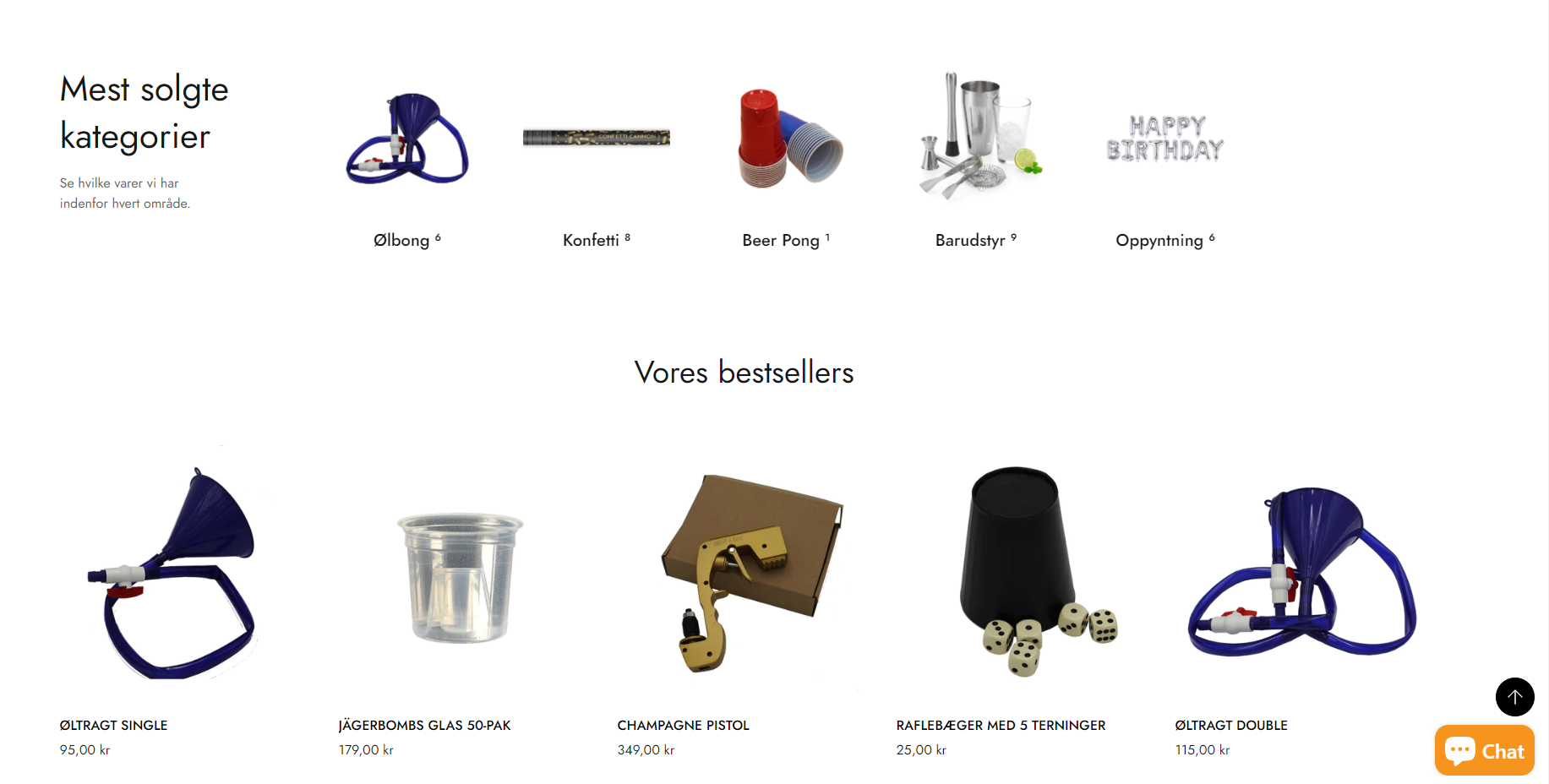 Produktet er primært en Webshop med salg af festudstyr, hvor jeg også har en aftale med Wolt der leverer i Aalborg. Denne aftale kan rykkes til andre byer, hvis det ønskes.