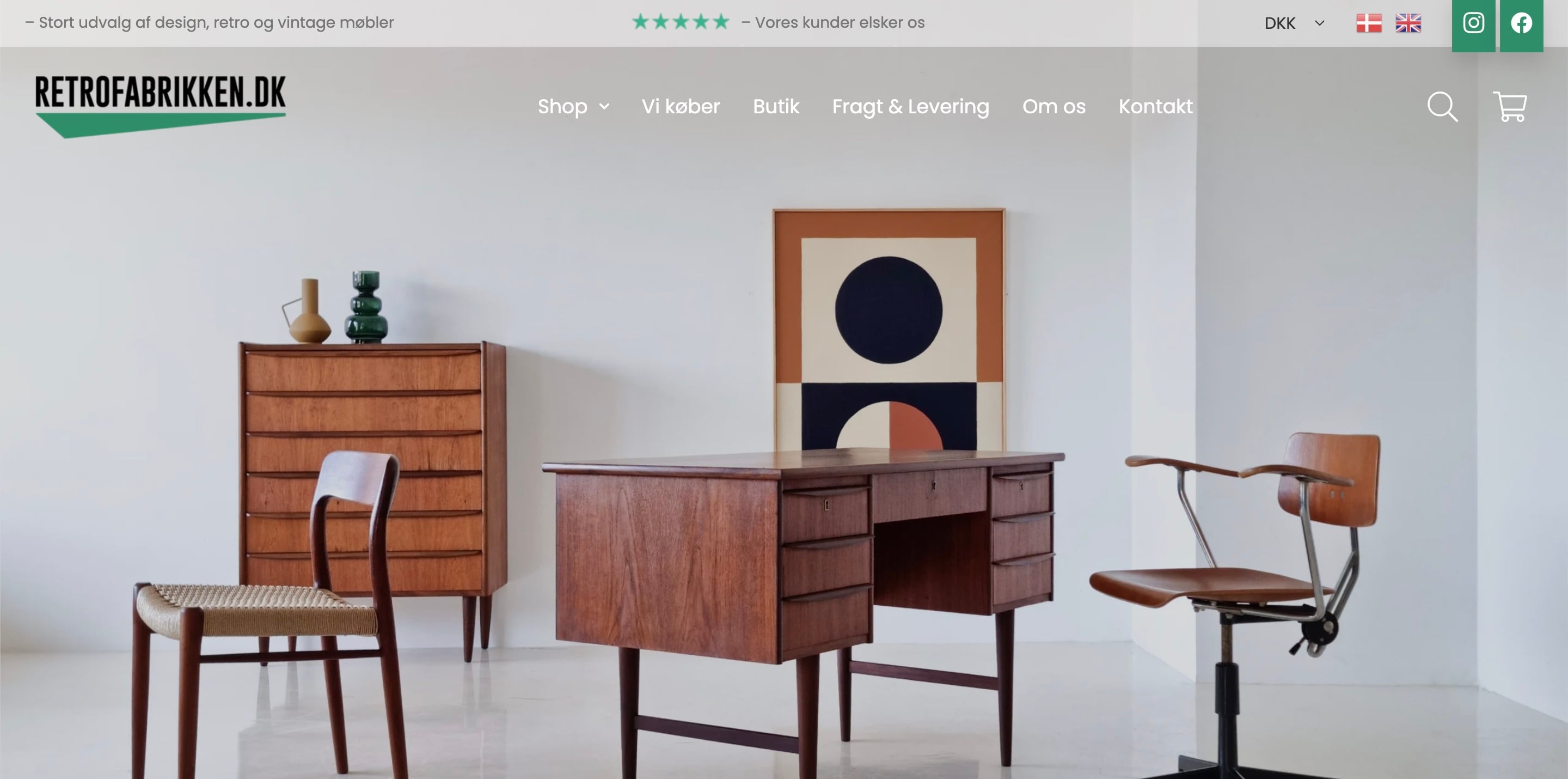 Hos Retrofabrikken elsker vi retro, vintage og design. Vi er en familiedrevet virksomhed, hvor passionen for retro og design er drivkraften bag alt, hvad vi gør. Når du besøger os, møder du de samme mennesker, der både opkøber, renoverer og sælger vores unikke møbler. Vores dybe kærlighed til håndværk og design skinner igennem i hvert projekt, og recirkulation er hjertet af vores forretning. Uanset om det er genbrug eller upcycling, stræber vi efter at give gamle møbler nyt liv, og bidrage til en mere bæredygtig tilgang til indretning. Når du investerer i Retrofabrikken, investerer du i et dedikeret team med en brandende passion for deres arbejde. Vores kunder spænder fra private til virksomheder over hele verden, med særligt fokus på Kina/Østen og de baltiske lande.