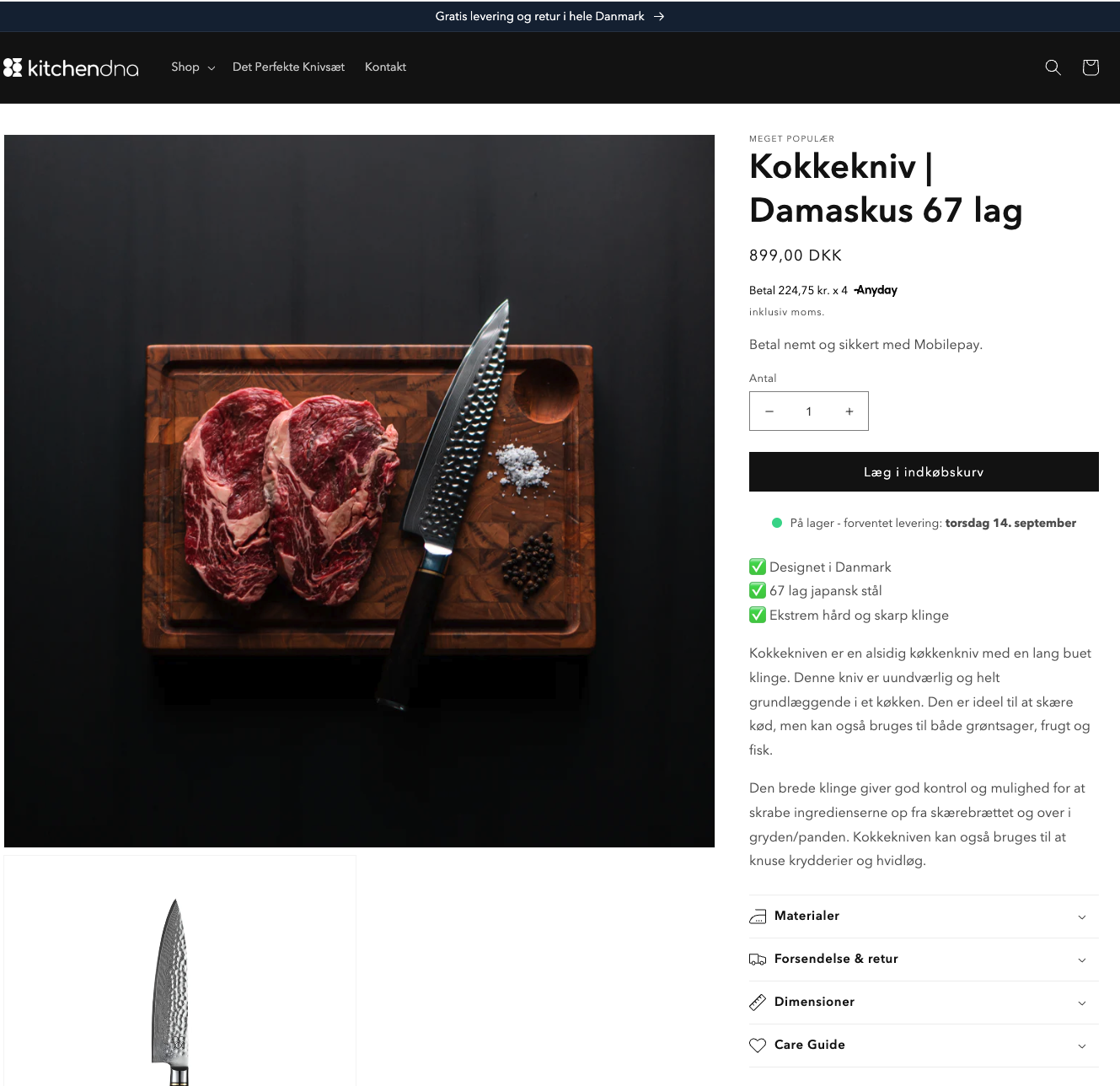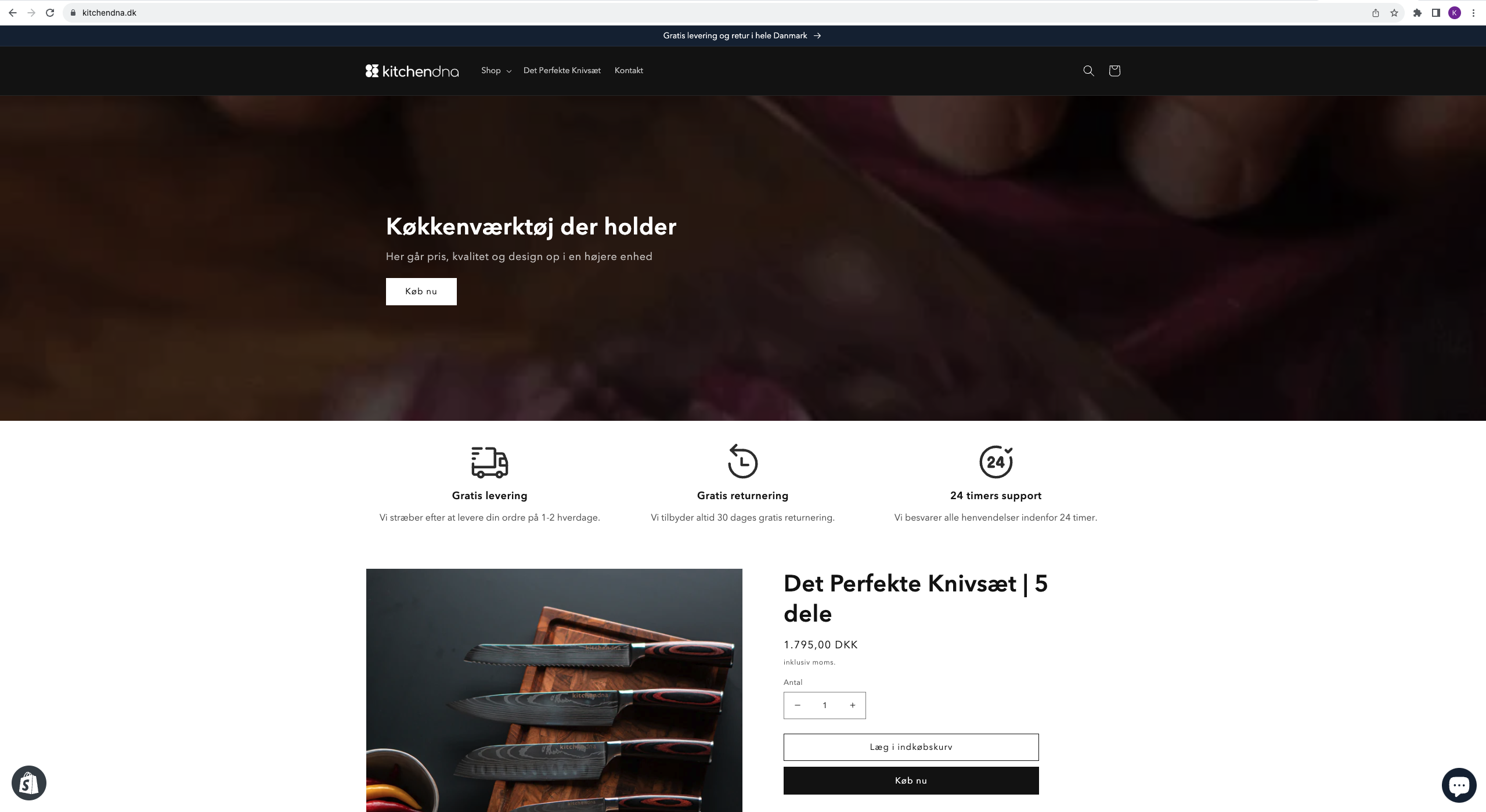 Hjemmesiden er kitchendna.dk og udviklet i Shopify med Shopify 2.0.