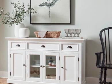 Møbler er borde, skabe til gulv og væg. Vitrineskabe, skænke og reoler mv.