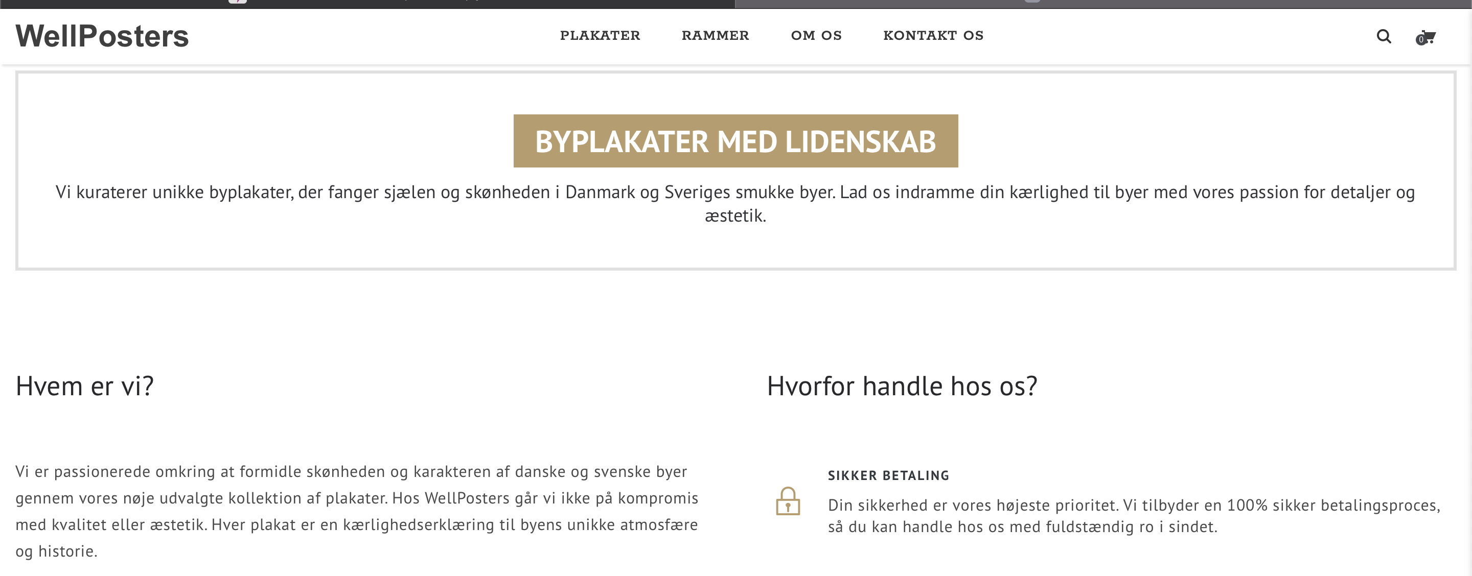 Drømmer du om at blive webshopejer og drive din egen forretning? Her får du muligheden. Wellposters.dk er en dansk webshop der sælger unikke byplakater fra Danmark og Sverige (mulighed for at få byplakater fra Norge med). Shoppen kører i gennem dropshipping, så du slipper for at printe og sende plakaterne til dine kunder. Med Danske trykkeri(er) er du i gode hænder, så du billigt og hurtigt kan få printet, pakket og sendt dine plakater til dine kunder. Shoppen er helt ny og uden omsætning. Du overtager dermed en køreklar webshop som med sine pæne og gode setup har potentiale til at blive en rigtig god forretning. Avancen på plakaterne er på 60%, så hvis man ligger tid og energi i projektet og får sat gang i effektiv markedsføring, så er der rigtig gode muligheder med denne shop.