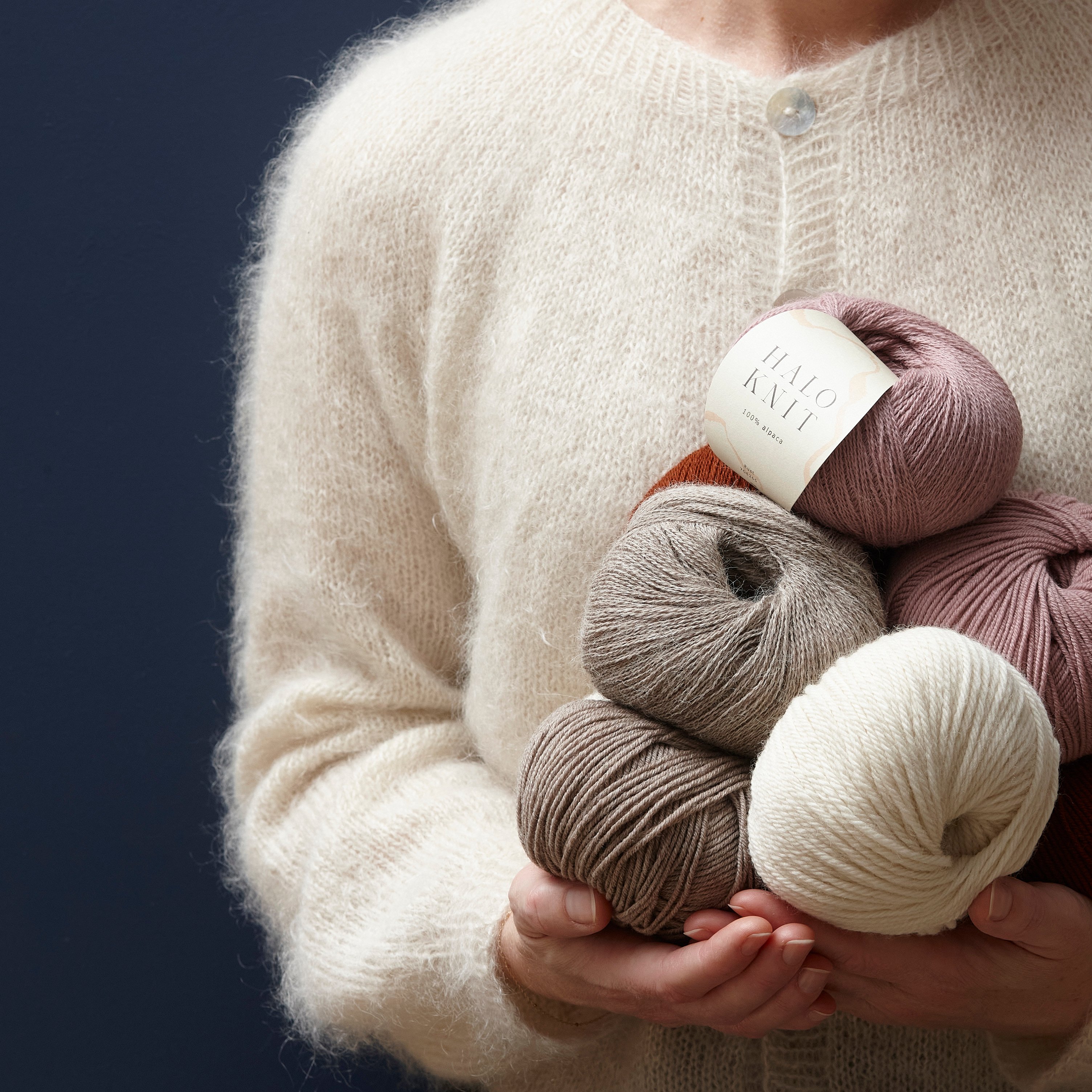 HALO KNIT er en lille webshop, der sælger kvalitetsgarn og strikkeopskrifter under eget brand.