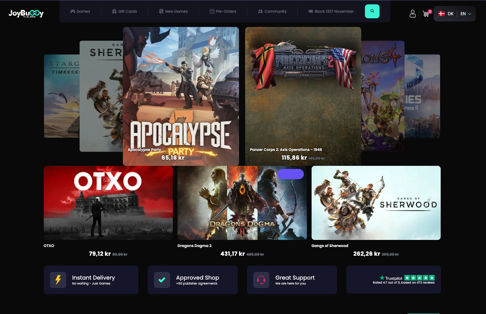 Vi tilbyder hurtig levering, sikker opbevaring af spilkoder og god support - Det har sikret os en 4.8 Trustpilot score